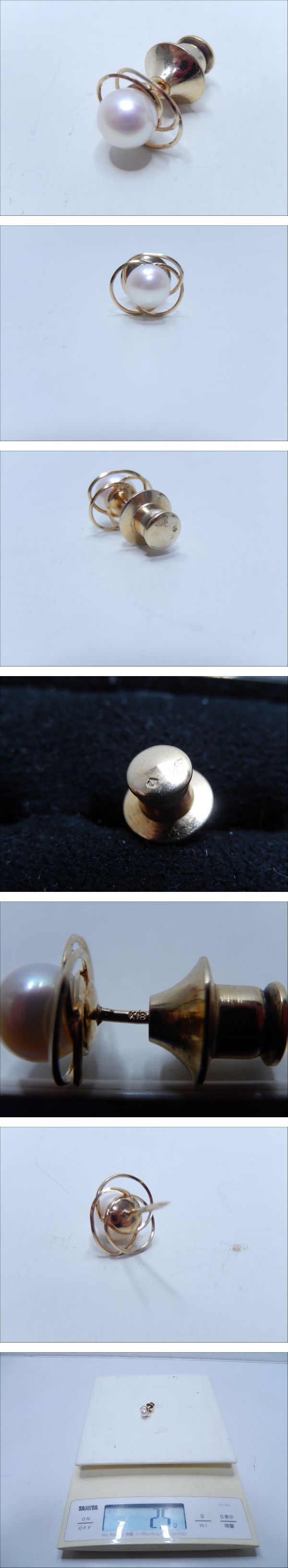 | ご覧いただきありがとうございます。 【商品名】 アコヤ K18 ゴールド タイタック 7.2mm玉 約2.5g 【商品詳細】 K18、アコヤ真珠のタイタックになります。 【状態】中古 個人の主観になりますが、外観は使用感もほとんどなく、大きな瑕疵もない比較的綺麗な状態だと思います。 あくまで個人の見解になりますので写真にてご判断下さい。 保管品の為、多少の小キズ・擦れ、写真に写りきらない汚れ等ある場合が ございます。ご理解頂ける方のみご参加ください。 【サイズ】 珠サイズ:約7.2mm 重さ:約2.5g (素人計測になります。) 【付属品】 写真のものがすべてになります。 【発送】 ゆうパック:60サイズ レターパックライト:430円 定形外:140円 (レターパック・定形外は簡易梱包) | ||