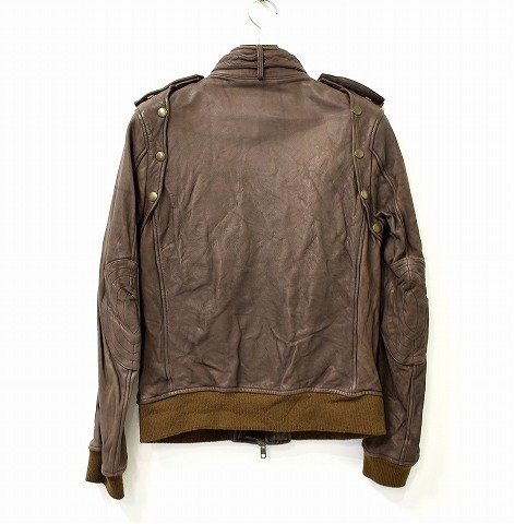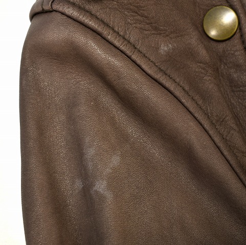 「marka」のMEMBERS ONLY TYPE LEATHER JACKETです。 ・素材:カウレザー100%。 ・カラー:ブラウン。 ・サイズ:2。 実寸・肩幅 約43cm・身幅 約45cm・着丈 約59.5cm・袖丈 約64cm。(多少の誤差はお許しください) 「marka(マーカ)」メンバーズオンリータイプ レザーライダースジャケットです。 袖も取り外しでき、色んな季節で重宝されます。 シワ加工が施され、味のある雰囲気に仕上がっております。 保管のみの未使用品ですが、両肩に若干の汚れが見られます。しかし、通常の着用に問題は無く、まだまだ着ていただけます。ご理解いただける方のみお買い求めください。 タグ付き。定価123900円。日本製。 かなりお値打ちだと思います。この機会にぜひ!。 他にもいろいろ出品しています。 管理番号:091001MY-033388 N1★ PD222403-2000 |