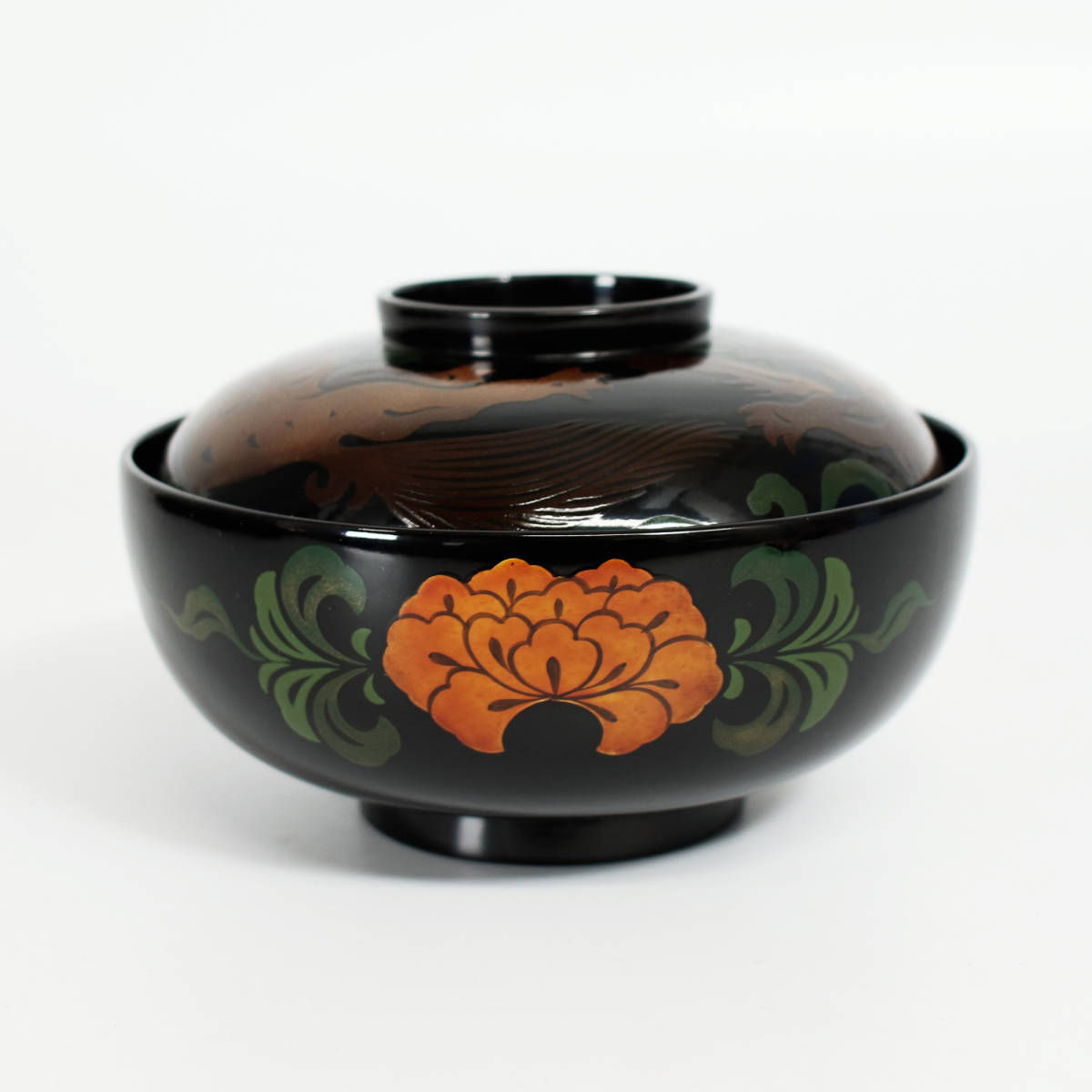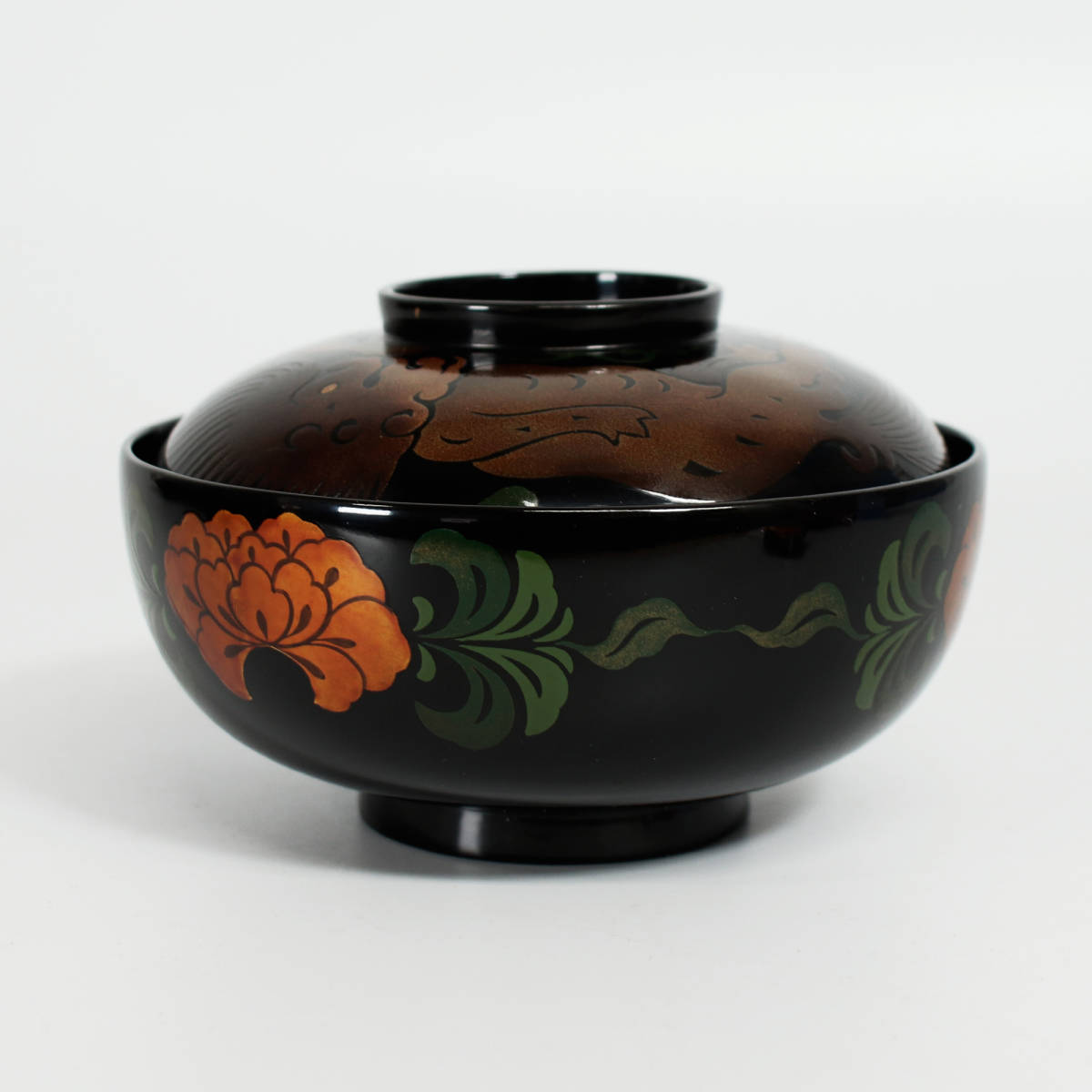 *■ 漆器 ■ 牡丹に唐獅子古代蒔絵 平仙斎形椀 五客揃 <221029064>*
