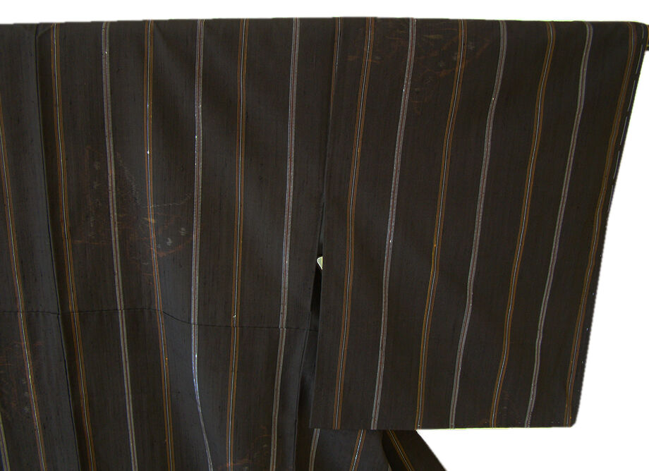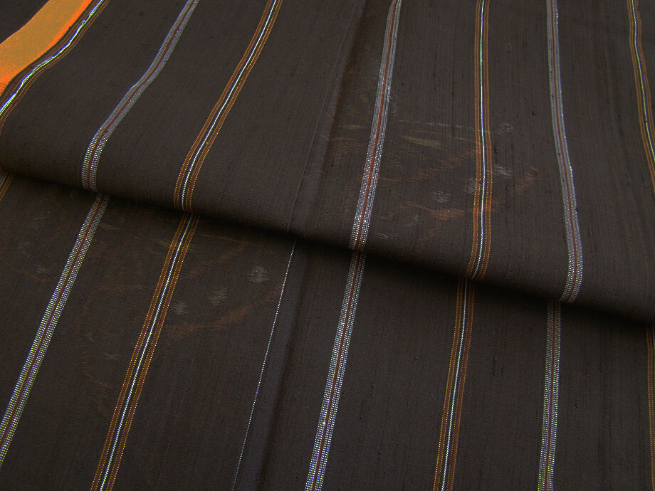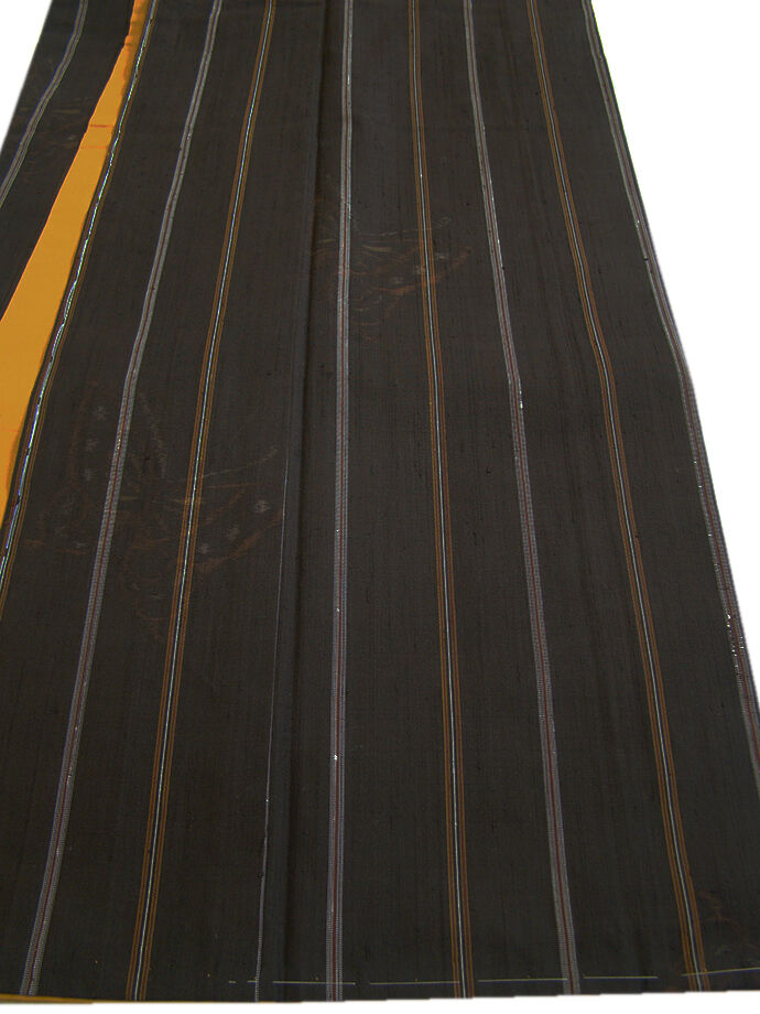| 商品説明 | こちらのお品は「袷」ですので、10月から5月までお召し頂ければと思います。 十日町紬は着易く動きも軽く、着くずれしない腰の強さを併せ持った お洒落着としていつでもどこへでもお気軽にお愉しみ頂けご愛用頂けるお品です。 渋い黒茶色地に縞に蝶々の飛び柄の織柄、 八掛は色(正絹)、幅広い年代の方にお召頂け一枚あれば重宝致します。 |