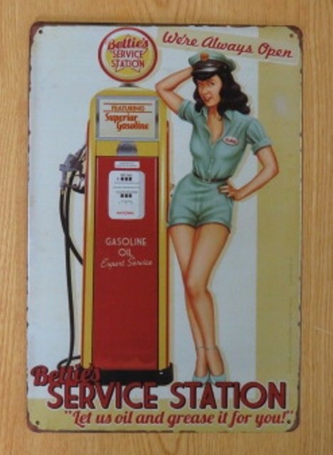 ガソリンスタンド ベティーズ サービスステーション金属製 メタルサインプレート HOT ROD ホットロッド アメリカングラフィティ 看板 ブリキ アンティーク ガレージ インテリア 広告 カフェ 店舗備品 ガソリンスタンド ベティーズ サービスステーションのかっこいい金属製サインプレート。 約A4サイズぐらいのお手ごろサイズのプレートですので飾る場所を選びません。 古びた感じのサビ、キズ表現付きですのでレトロ感バツグン♪ ガレージ、お店、お部屋をおしゃれに演出します! 車内のトノカバーなどに取り付けてもかっこいいかも! ★商品内容 ・鉄製 サインプレート 1枚 (サイズ・・・約30センチ×約20センチ) ★飾り方について ・そのまま棚などに立てかける。 ・細い釘や針の長い画鋲、細いタッピングビスで壁に固定する。 ・クッション付きの超強力両面テープで壁に固定する。 ・超強力なマグネットを両面テープで壁に取り付け、そこにサインプレートをバッチンコ!(これならその日の気分で看板を簡単に交換できます!) ★屋外で使用したい場合 鉄製ですので錆びやすいです。クレ シールコートをスプレーしたり、ガラスコーティングしたり、防錆&紫外線対策を施してあげると良いでしょう。 わざとサビさせてラットな雰囲気を高めたい方はそのままお使いください。 ★注意事項 量産品のためプレス時のかすかな変形、かすかな擦り傷、かすかな汚れ等ある場合があります。 神経質な方にはオススメできません。 |