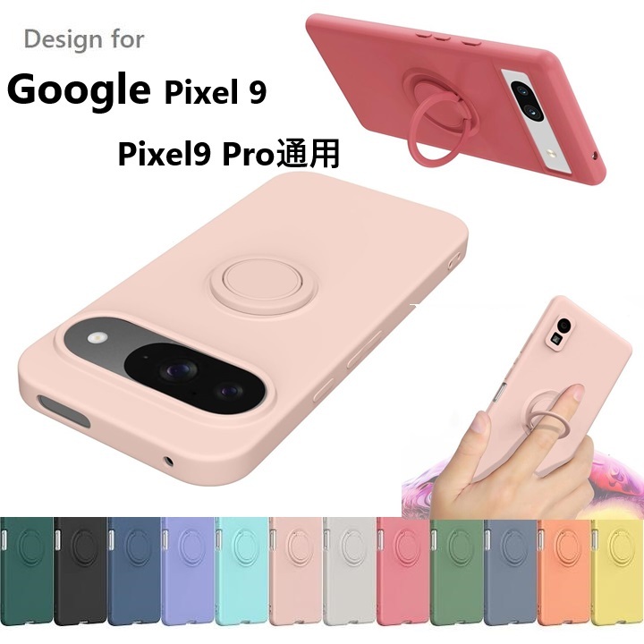 | Google Pixel 9/9 Pro通用 硬質シリコン ソフト リング付 バックカバー 保護ケース 衝撃吸収 落下防止 スタンド ストラップ付 |