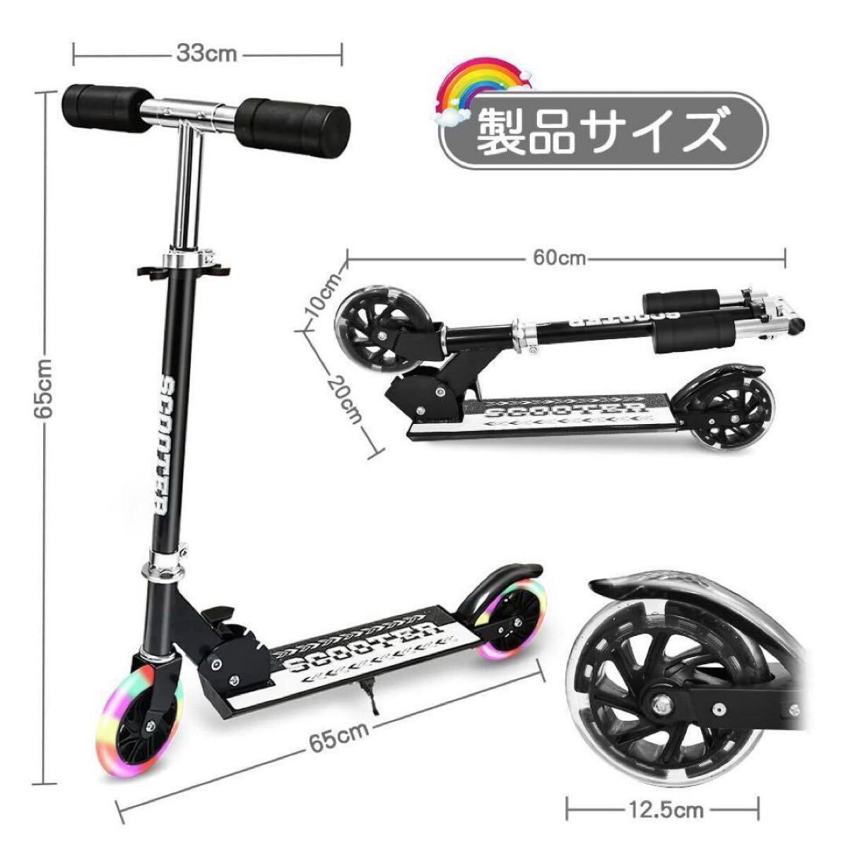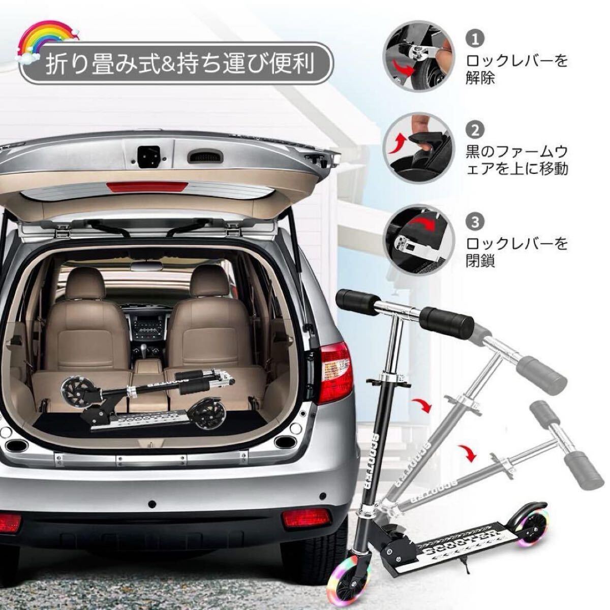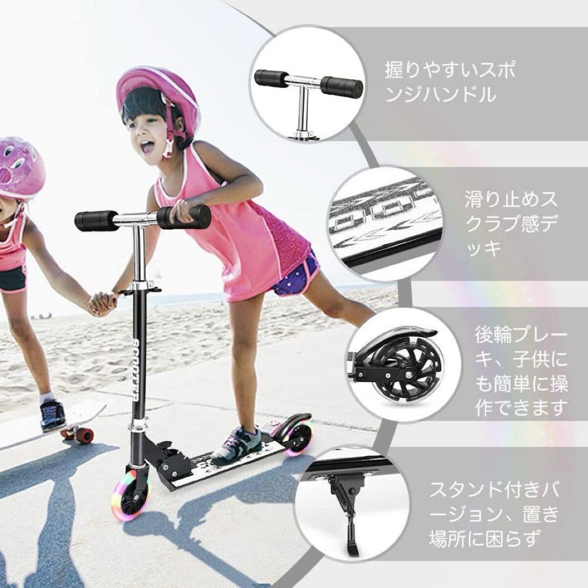 キックボード キックスケーター 後輪ブレーキ スタンド付き LEDホイル光る