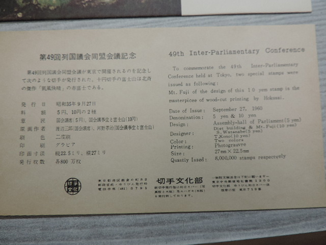 ★第49回列国議会同盟会議記念★ 初日カバー 昭和35年9月27日・東京 10円切手・5円切手×各1枚 切手文化部発行| 出价者 | 信用 | 价格 | 时间 |
