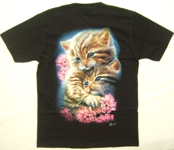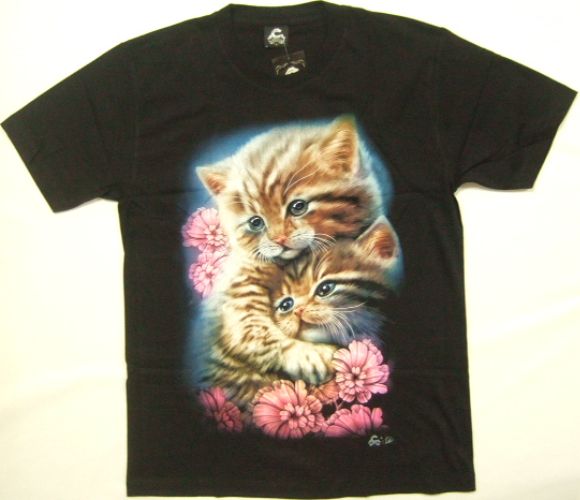 | 商品名 | 横浜最新 可愛い2匹の子猫と花♪魅惑の夜光仕上げTシャツ サイズ M, L, XL |
