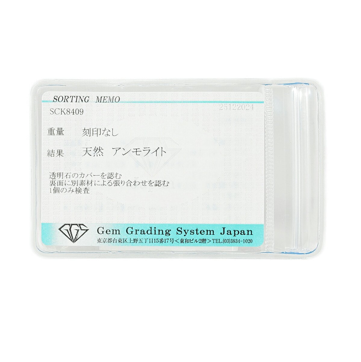 アンモライトの美しいモザイク模様が特徴的なペンダントトップ。まるで万華鏡やオーロラを連想させる神秘的な輝きで、角度によってさまざまな表情を楽しめる一品です。![]() |