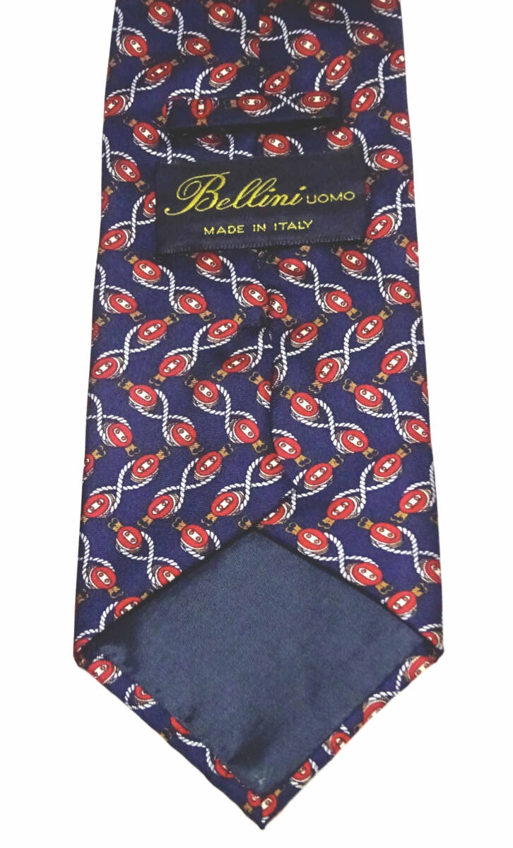 | タイトル | ●Bellini ITALY uomo ベリーニ / イタリア製・総柄・幾何学模様・シルク・ネクタイ・ネイビーブルー / USED |