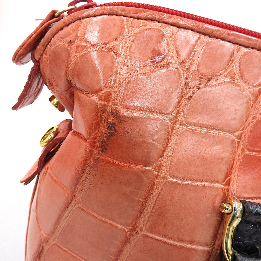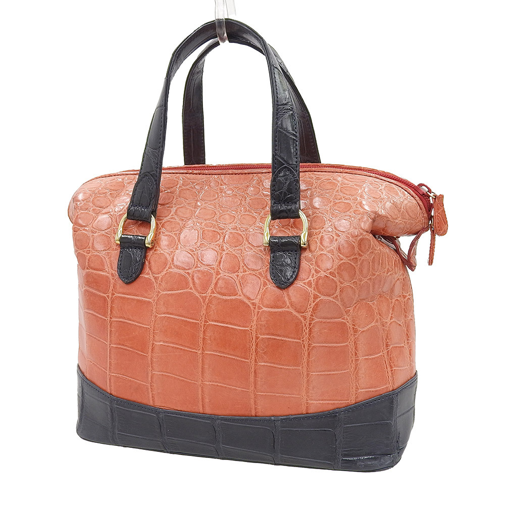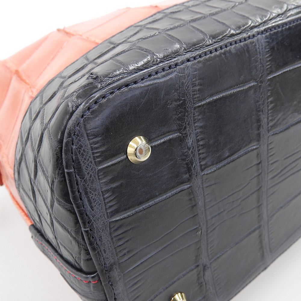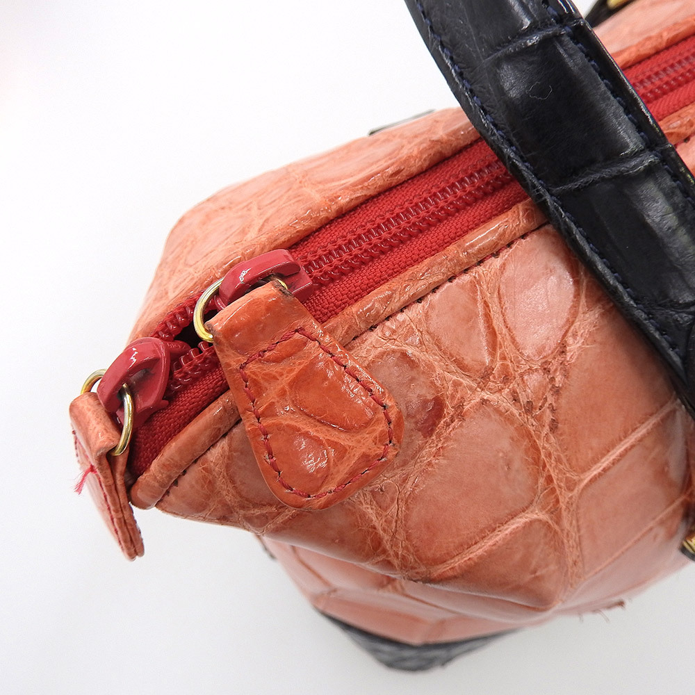 | 美品 キタムラ KITAMURA 高級メタルタグ マットクロコ バイカラー ミニボストン ハンドバッグ レディース クロコダイル ピンク 青 |