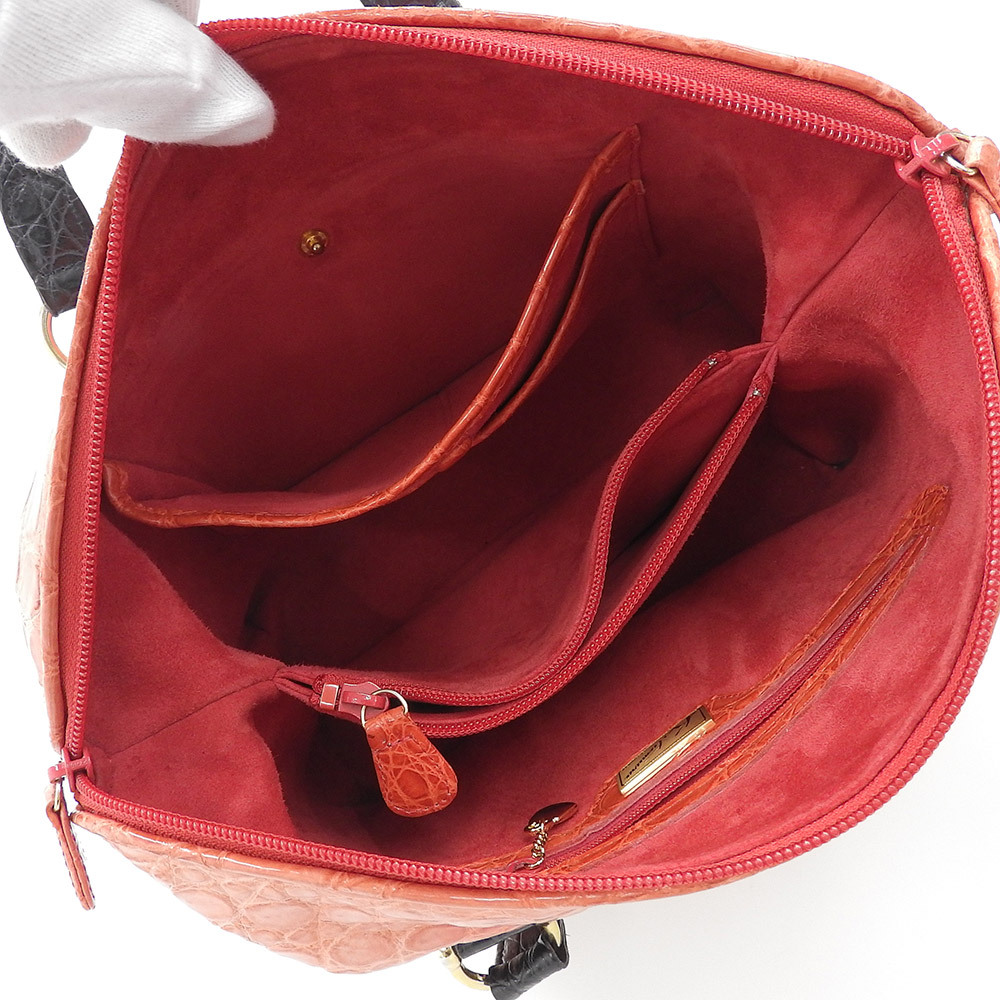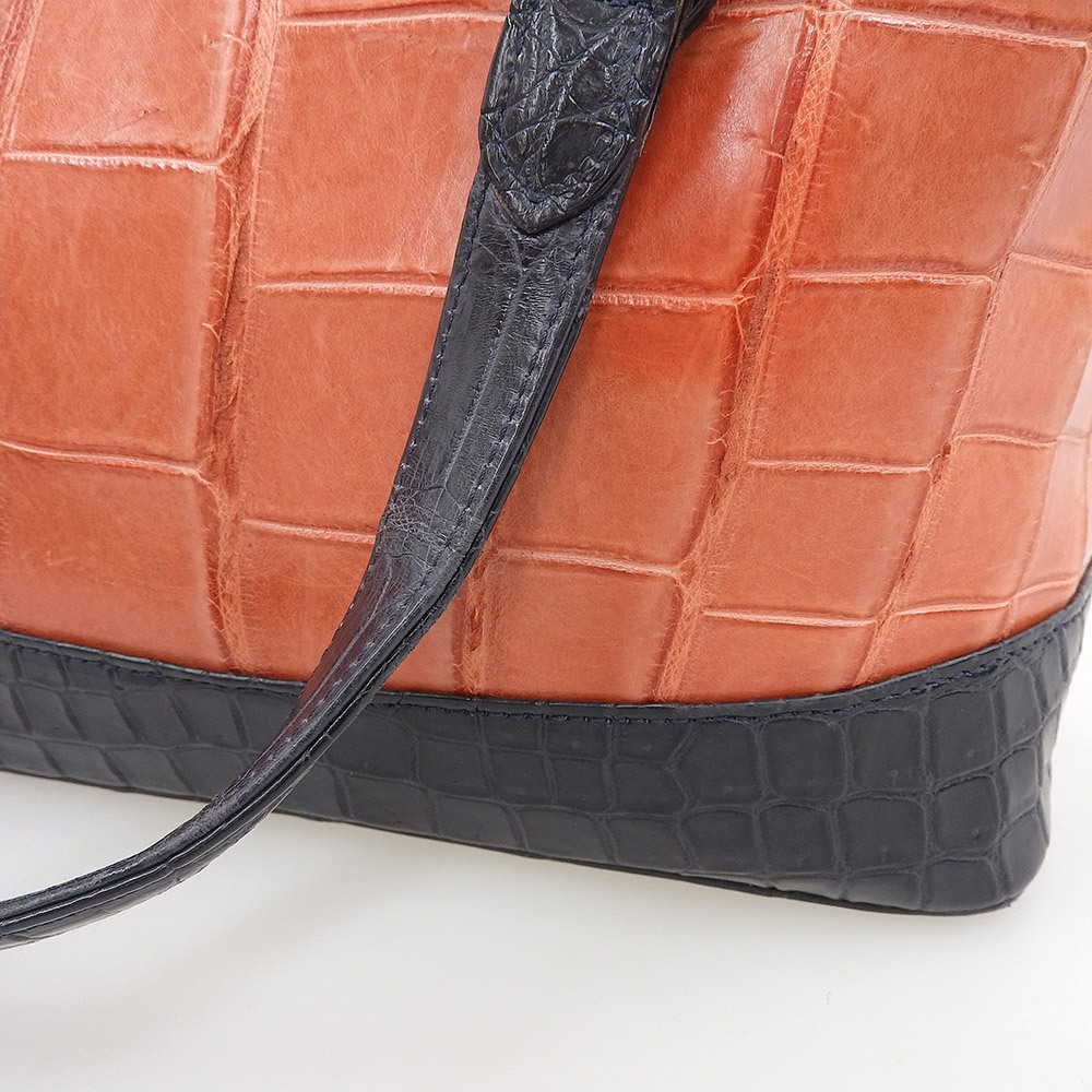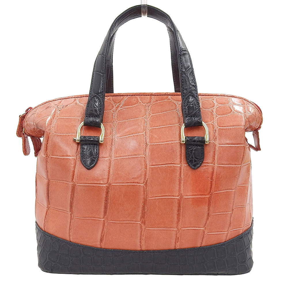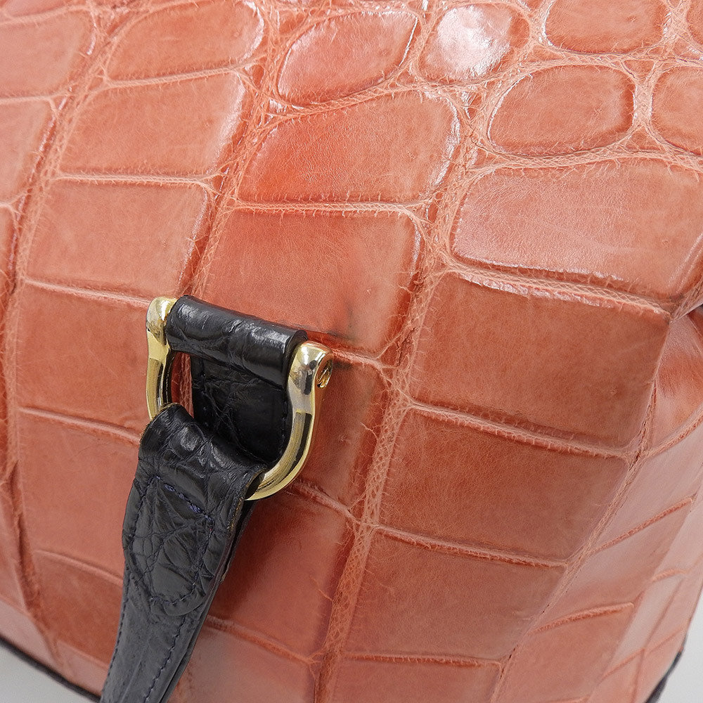 | 美品 キタムラ KITAMURA 高級メタルタグ マットクロコ バイカラー ミニボストン ハンドバッグ レディース クロコダイル ピンク 青 |