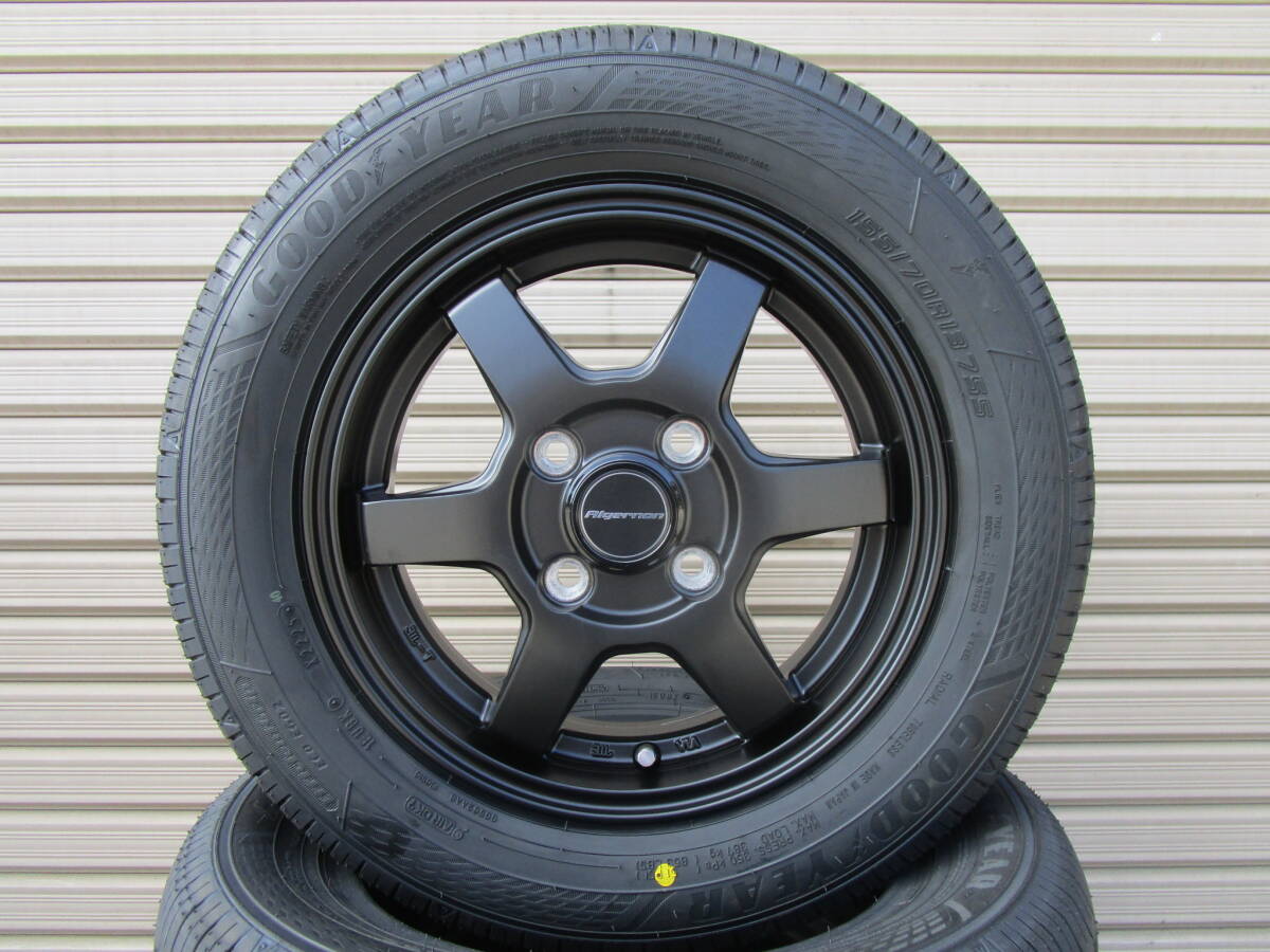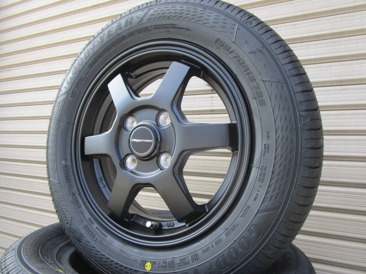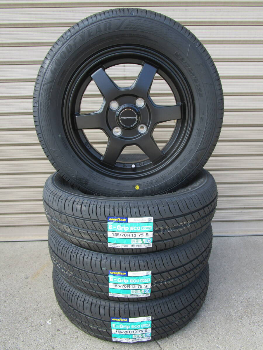 商品詳細 【ホイールサイズ】 F:R 13×4.0J オフセット43 PCD:100-4H 【タイヤサイズ】 F:R 155/70R13 新品 グッドイヤーEG02 【ホイール】 ・ホイールは新品未使用品になります。 ・カラーは、ブラックになります。 ・多少の汚れや小傷等がある場合がございます。 状態は画像を参考にして下さい。 【タイヤ】 ・タイヤは新品未使用品です。 ・タイヤの製造年数は、2025年製です。 ・多少のラベルの剥がれ等はご了承下さい。 ●タイヤ、ホイール共に状態は個人差がございますので、画像を参考にして下さい。 ※マッチング等はご落札前に必ずネットやお店等でお調べ下さい※ (題名に記載がある車両でもマッチング等は必ずお調べ下さい) ☆午前中に入金確認が取れた方のみ当日発送になります。 ※法人のお客様は平日14時までのご入金、土曜日11時までのご入金で当日発送できます。 ※その他詳細はつきましては、説明文を最後まで良くお読み頂けますようお願い致します。 | |||