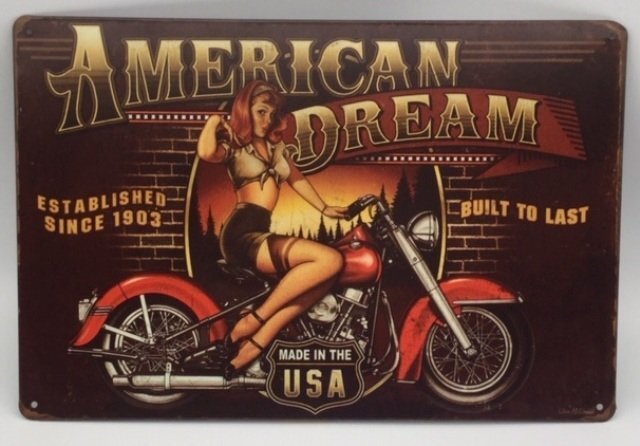 アメリカン ドリーム モーターサイクル 金属製 メタルサインプレート 看板 ブリキ アンティーク ガレージ インテリア 広告 カフェ バー 店舗備品 修理工場 バイク ガレージ レトロ オートバイ プロショップ カスタムショップ アメリカン ドリーム モーターサイクルのかっこいい金属製サインプレート。 約A4サイズぐらいのお手ごろサイズのプレートですので飾る場所を選びません。 古びた感じのサビ、キズ表現付きですのでレトロ感バツグン♪ ガレージ、お店、お部屋をおしゃれに演出します! 車内のトノカバーなどに取り付けてもかっこいいかも! ★商品内容 ・鉄製 サインプレート 1枚 (サイズ・・・約30センチ×約20センチ) ★飾り方について ・そのまま棚などに立てかける。 ・細い釘や針の長い画鋲、細いタッピングビスで壁に固定する。 ・クッション付きの超強力両面テープで壁に固定する。 ・超強力なマグネットを両面テープで壁に取り付け、そこにサインプレートをバッチンコ!(これならその日の気分で看板を簡単に交換できます!) ★屋外で使用したい場合 鉄製ですので錆びやすいです。クレ シールコートをスプレーしたり、ガラスコーティングしたり、防錆&紫外線対策を施してあげると良いでしょう。 わざとサビさせてラットな雰囲気を高めたい方はそのままお使いください。 ★注意事項 量産品のためプレス時のかすかな変形、かすかな擦り傷、かすかな汚れ等ある場合があります。 神経質な方にはオススメできません。 |
