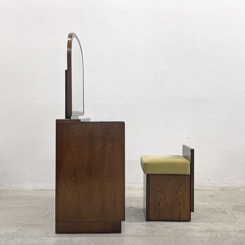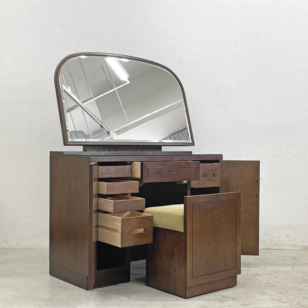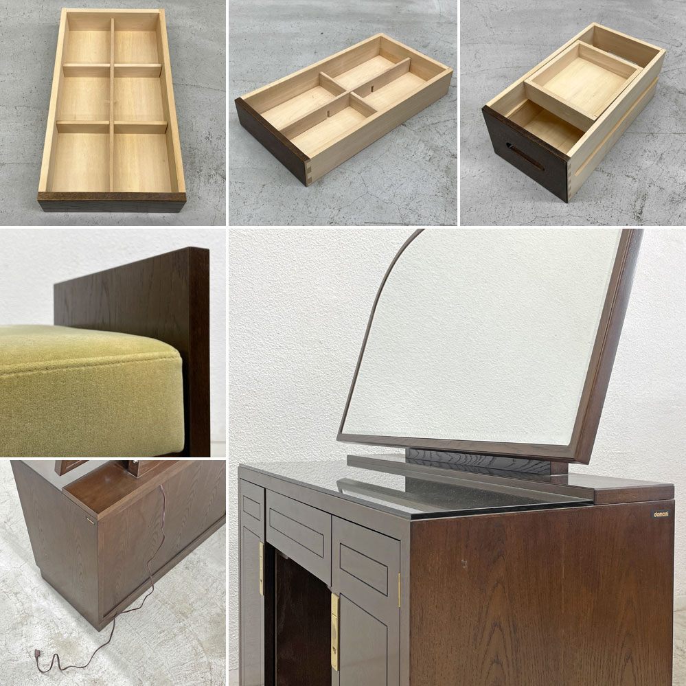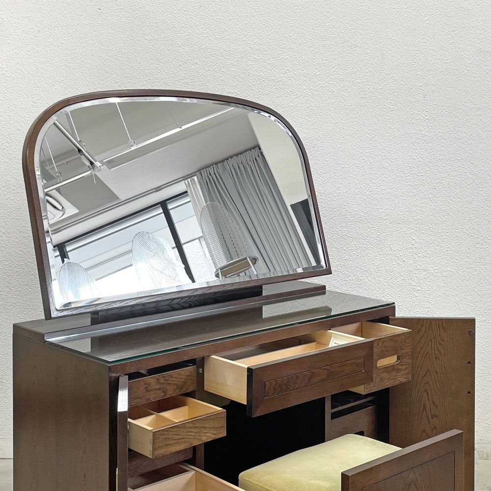 | コメント | 1940年に愛知県に創業以来、日本中の多くのファンから愛用される家具を作り続けている老舗家具メーカーの“カリモク家具/karimoku”。 同ブランドの高級ラインである「ドマーニ / domani 」より、『 モーガントン Morganton 』のドレッサーとスツールのセットです。 豪華客船の内装をモチーフに生み出されたドマーニシリーズ。 力強いオーク材の魅力を引き立てるヒッコリーブラウンカラーにゴールドの装飾が相まって高級感を演出。 シンプルながら職人の拘りを感じられるディティールはまさにカリモクの最高峰。 スツールの背面は、ドレッサーの前面と統一された納まりの良いデザインとなっております。 その他にも角度をつける事が出来る幅広のミラー。使い勝手の良いコンセントが一口。片開きの前面を開くと2種類の深さのドロワー。組み換えが可能な仕切り板。 シンプルでありながら細かな造り込みからクラフトマンシップを感じられる上質な一台。 深みのある雰囲気でビンテージの家具ともよくマッチし、高級感ある贅沢な空間造りを可能にする逸品です。 ※当ショップは、主にリサイクル品を取り扱っております。基本的にUSED品である事をご理解頂き、ご入札をご検討下さいませ。 |