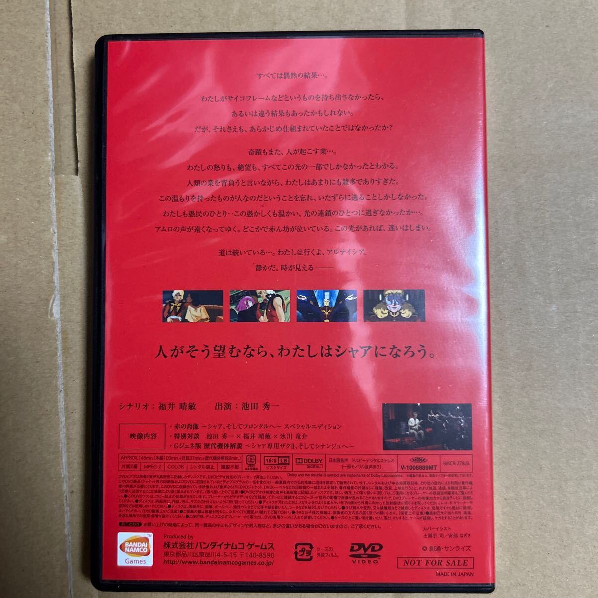 赤の肖像のDVDです。ガンダムのシャアのファーストからユニコーンのフロンタルまでの軌跡を池田秀一さんの朗読劇とアニメを組み合わせたような内容です。他にも池田さんと福井さんたちの対談などが収録されています。| 出价者 | 信用 | 价格 | 时间 |