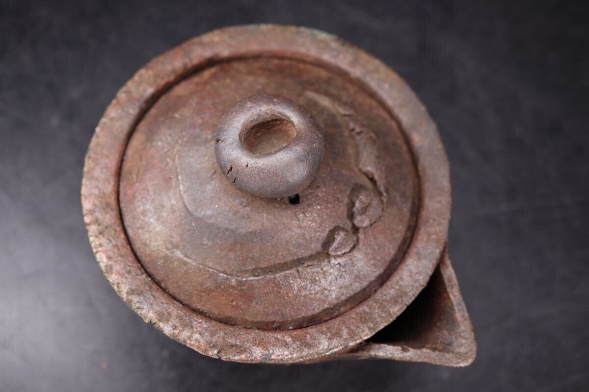 | 佐久知炎仙 造 秘色南蛮 宝瓶 共箱付 / 南蛮焼 泡瓶 急須 茶器 煎茶道具 手捻り 手造 .G2483 |