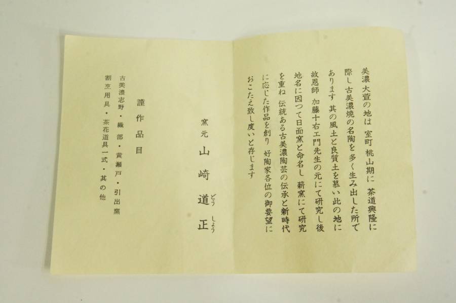 ●希少 美濃焼 日面窯 山崎道正 志野茶碗 共箱 やや汚れ有 茶道具