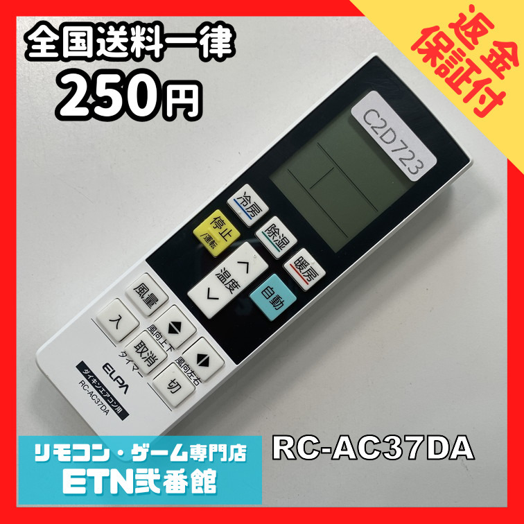 C2D723 【送料250円】エアコン リモコン / ELPA エルパ ダイキン用 RC-AC37DA 冷房 暖房 動作確認済み★即発送★