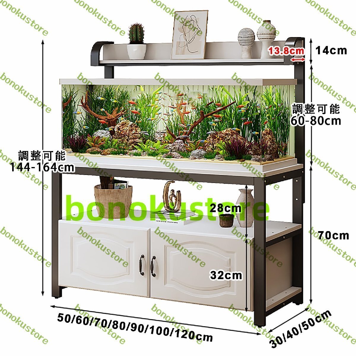 水槽台 50cm-120cm用 高さ調整可能(144-164cm) 収納棚付き 鉄製フレーム 木製ドア 最大耐荷重500kg 水槽・亀水槽・爬虫類ラック用 低い設計 B 120x40x70cm