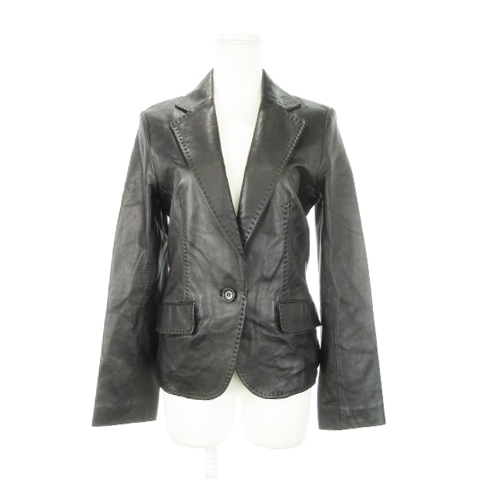 エクレールデフィ ECLAIR DEFI ラムレザージャケット テーラード 本革 羊革 総裏地 ステッチ 1 S 黒 ブラック /AH9 レディース
