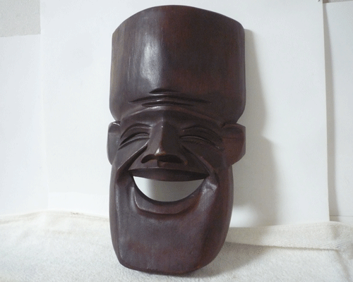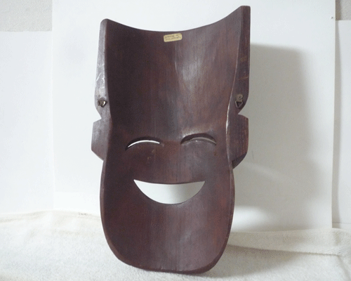 | お面 木彫り 笑顔 笑い面 木製 エスニック フィリピン 魔除け 壁掛け | ||