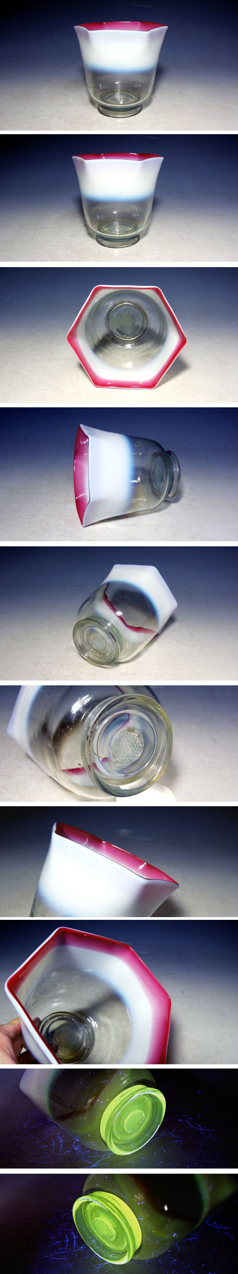 【 古作 六角花形 赤縁乳白ガラス深鉢(ウランガラス) 】 | |