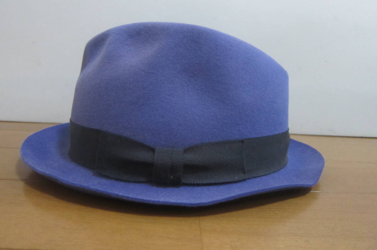 ★ ★override×BUNJIROW オーバーライド×文二郎 帽子 中折れハット 青紫系 サイズLL(60㎝) 日本製 毛100%★ ★