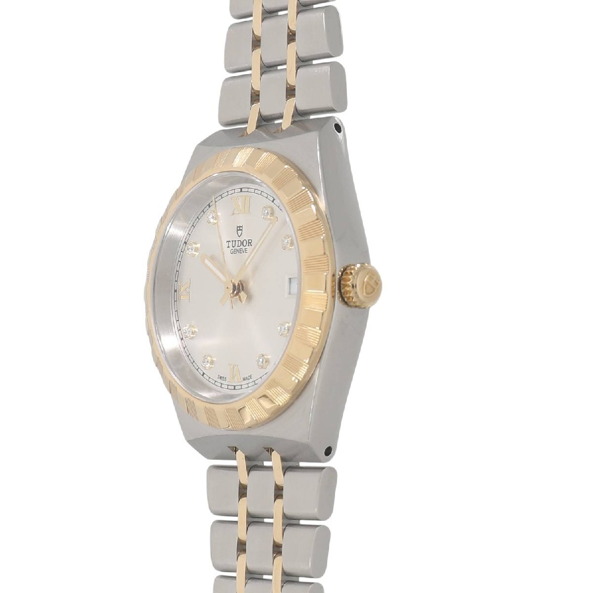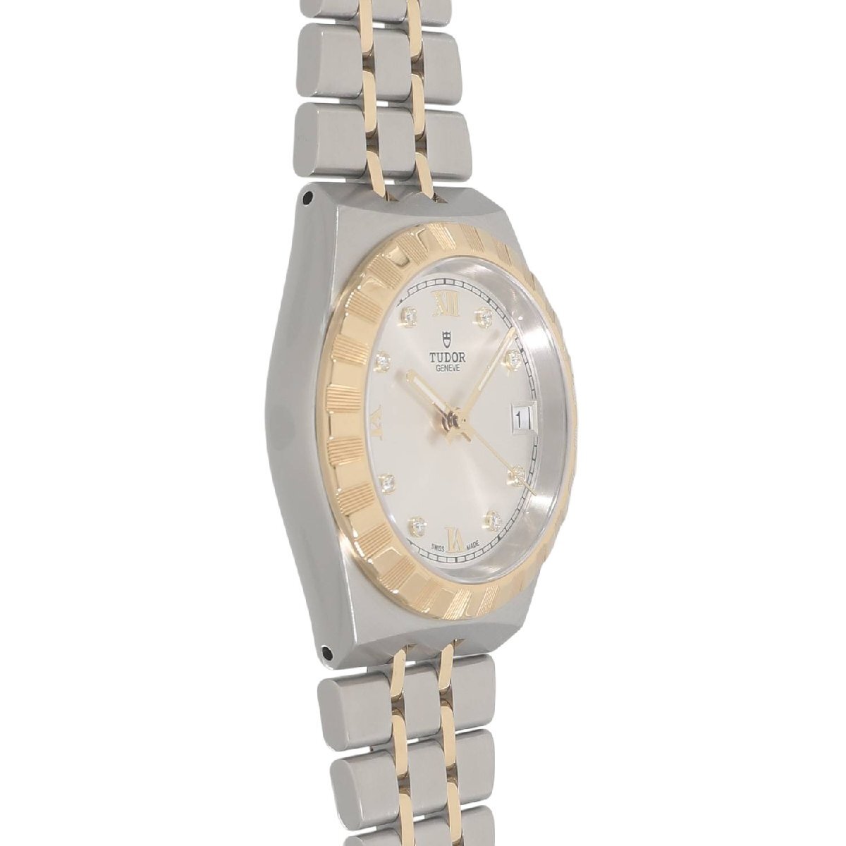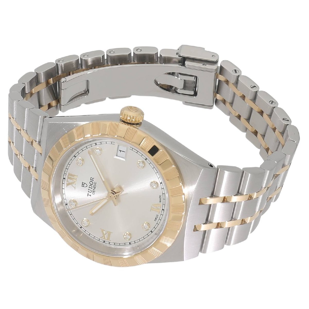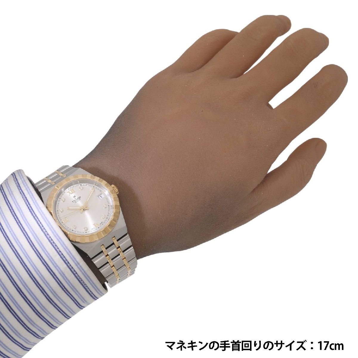 | モデルについて | チューダーの新たなコレクションとして2020年に誕生したロイヤル。かつてのプリンスやロレックスのデイトジャストを彷彿とさせるドレッシーなラインナップです。異なる仕上が交互に施されたノッチドベゼル、ケース一体化したインテグレイテッドブレスレットと呼ばれる5列リンクは、価格を凌駕する美しい仕上がりとなっています。ベゼルはイエローゴールド、ブレスレットにはゴールドキャップを採用するコンビネーション仕様で、高級感を感じさせます。34ミリのケース径はメンズサイトとレディースサイズの中間となるサイズ感となり、手首が細めの男性や、やや大き目のサイズを好む女性にご使用いただけます。 |