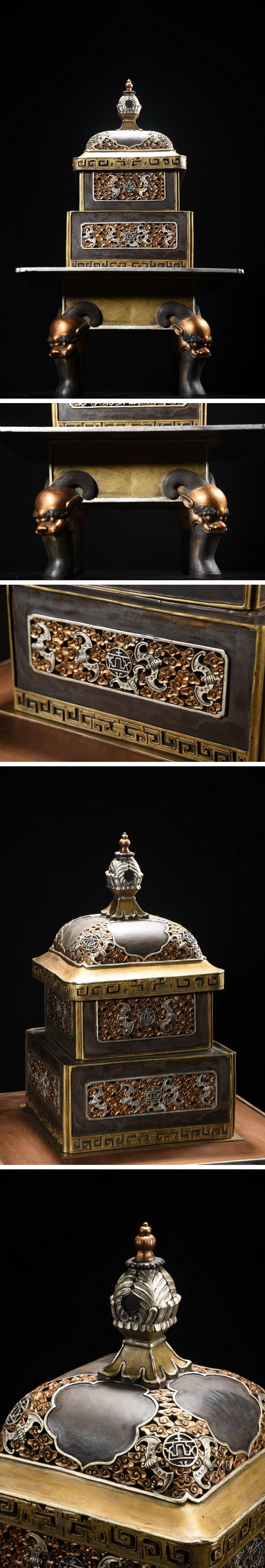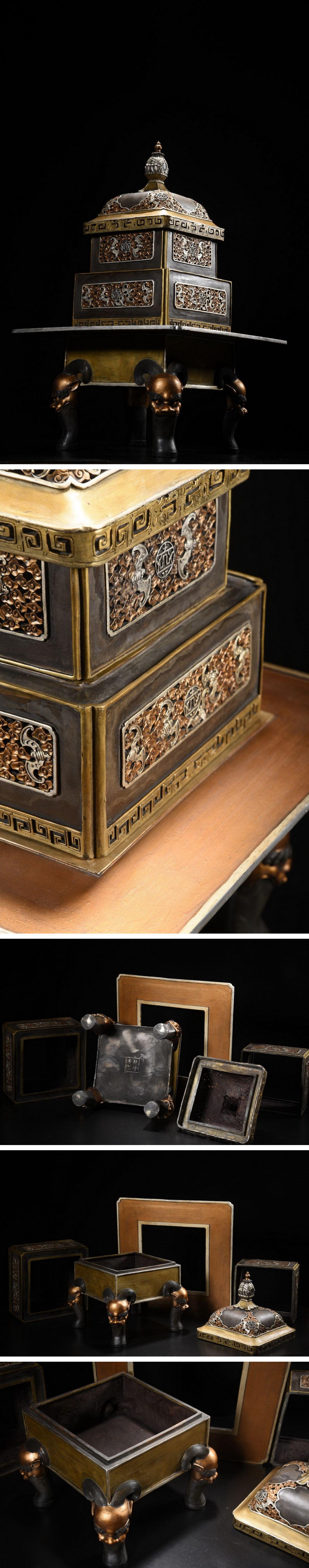 【清】某有名オークション購入 清時代 銅金 巨大福寿紋薫爐 材質保証 当時物保証 古置物 古擺件 古美術 時代コレクション7L10-DS14
