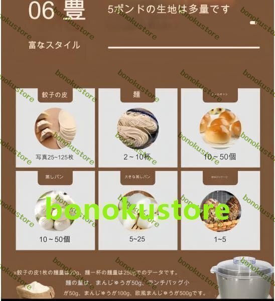 商品説明 商品の説明 商品の説明 ブランド: Fiegcit 単体重量:5kg 材質: ステンレス鋼 容量:5リットル(5L) 特徴: 多用途性: かき混ぜ、卵白の泡立て、生地の混合などの機能が含まれます。 透明な蓋のデザイン: 生地の状態を簡単に確認できます。 操作と清掃: 動作モード商品の説明 ブランド: Fiegcit 単体重量:5kg 材質: ステンレス鋼 容量:5リットル(5L) 特徴: 多用途性: かき混ぜ、卵白の泡立て、生地の混合などの機能が含まれます。 透明な蓋のデザイン: 生地の状態を簡単に確認できます。 操作と清掃: 動作モード:簡単なボタン操作 お手入れ方法: お手入れ簡単、食品グレードのステンレススチール。 使用シナリオと推奨オブジェクト: 適用範囲:家庭料理ニーズ、パン教室講師など こんな人におすすめ:自炊が多い人、パスタを作るのが好きな友達 製品の利点: 材料を入れてボタンを押すだけで簡単に生地が作れます。 プロの効果:プロの手で混ぜる効果を再現し、生地の質感をより繊細にします。 多機能ミキシング:生地を混合することに加えて、バターや卵白を撹拌することもでき、さまざまな生地作りのニーズに適しています。