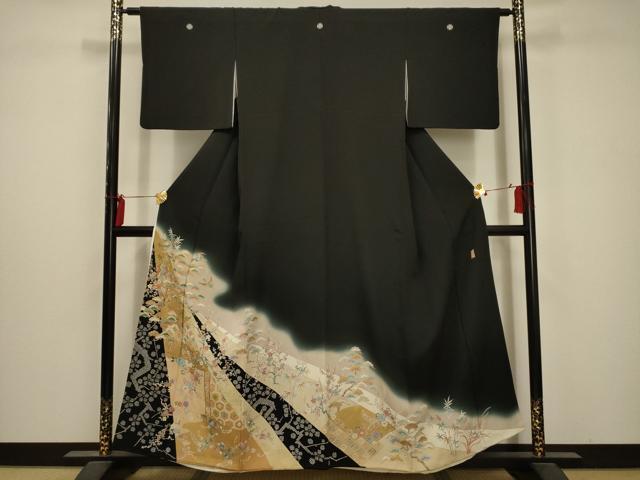 | 【正絹・五つ紋・比翼仕立て】 状態は画像を添付しておりますので、 そちらをご確認下さいますよう宜しくお願い致します。 大変上質な逸品になります。 お安く出品致しますので、是非この機会にいかがでしょうか?
