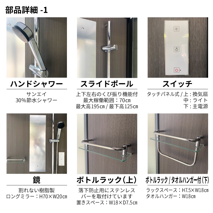 | シャワーユニット【DP-L01B Black Ash】シャワーブース LEDライト・換気扇・鏡付 シャワールーム 中が見えにくいガラス 簡単組立 全国配送 |
