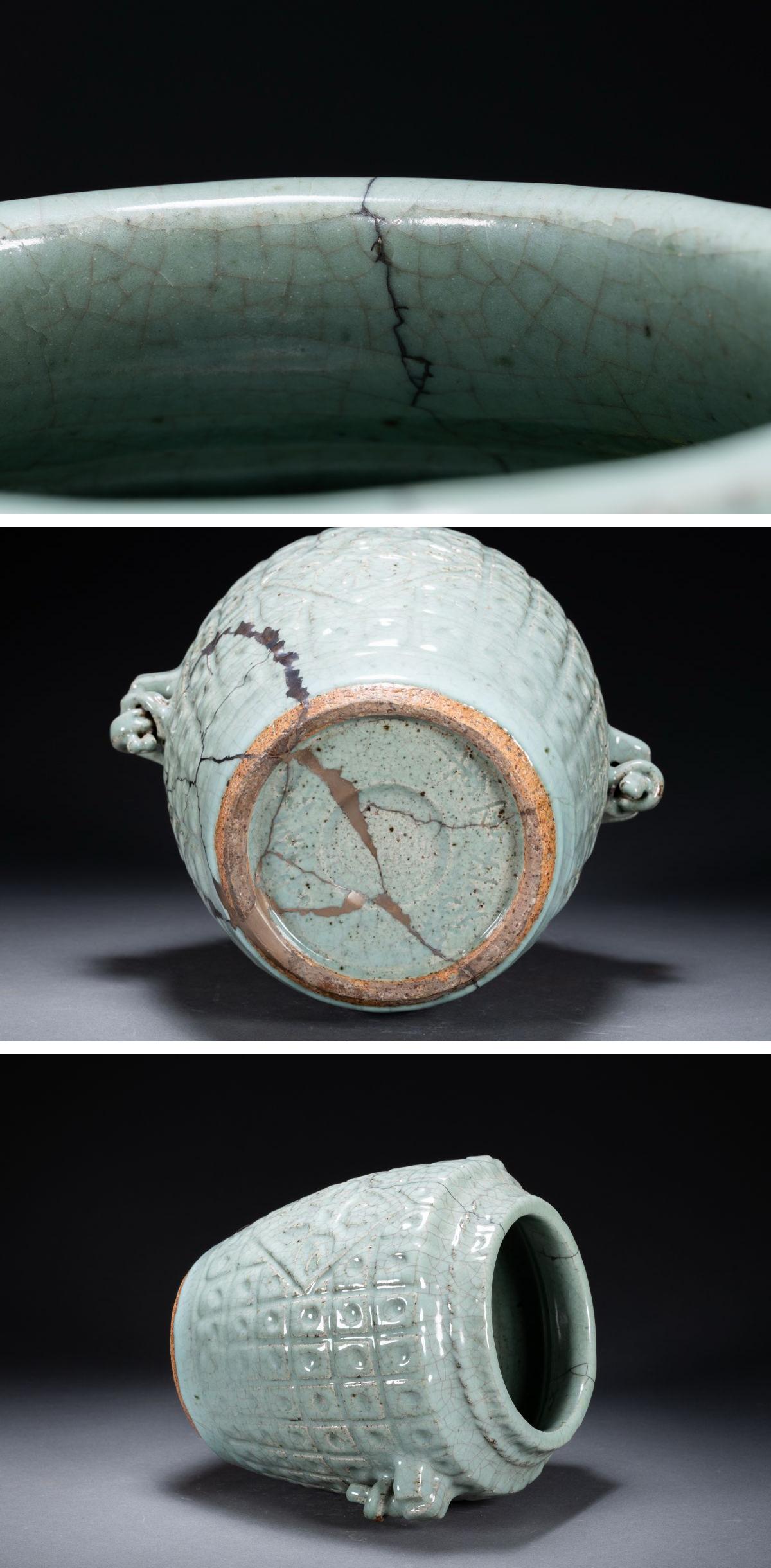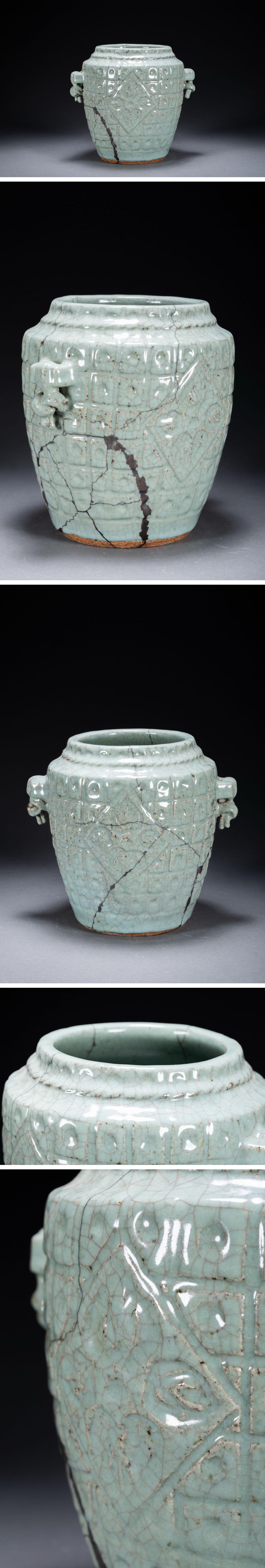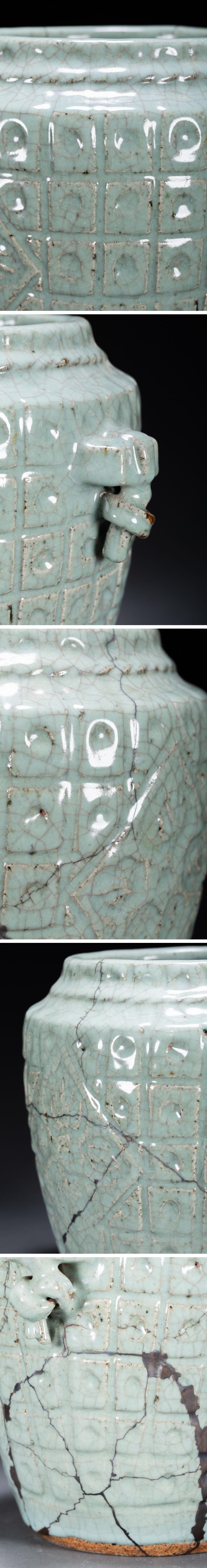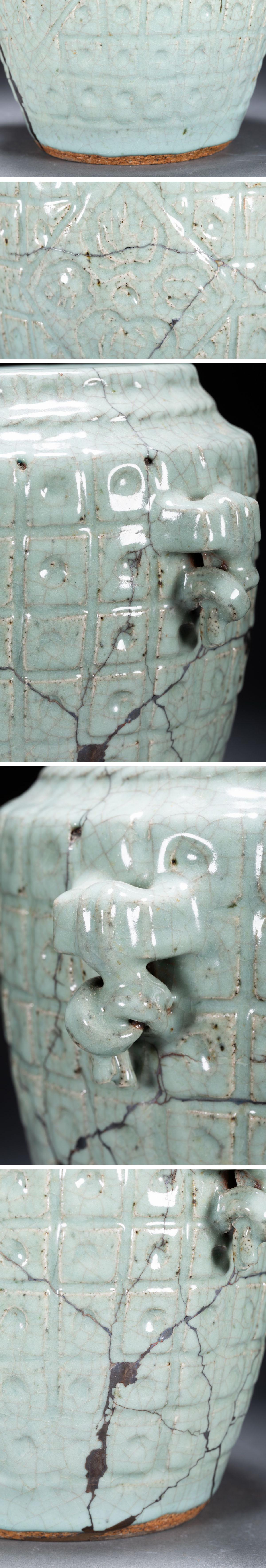 【雲錦】某有名オークション購入 李朝時代 朝鮮伝来 青磁巨大花入 修復あり 当時物保証古置物 古美術 時代コレクション7L10-155S1