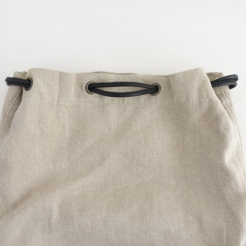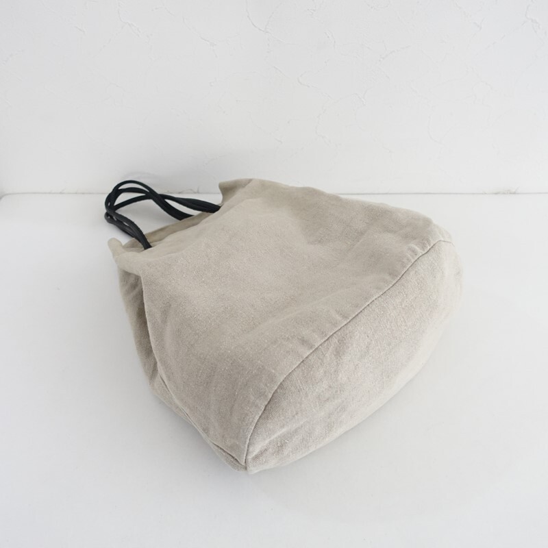 | ARTS&SCIENCEのOval lantern bag Lです。カラーはベージュで、開口は巾着です。内側にオープンポケットが1個ございます。定価(メーカー希望小売価格)49,500円のお品物です。 |