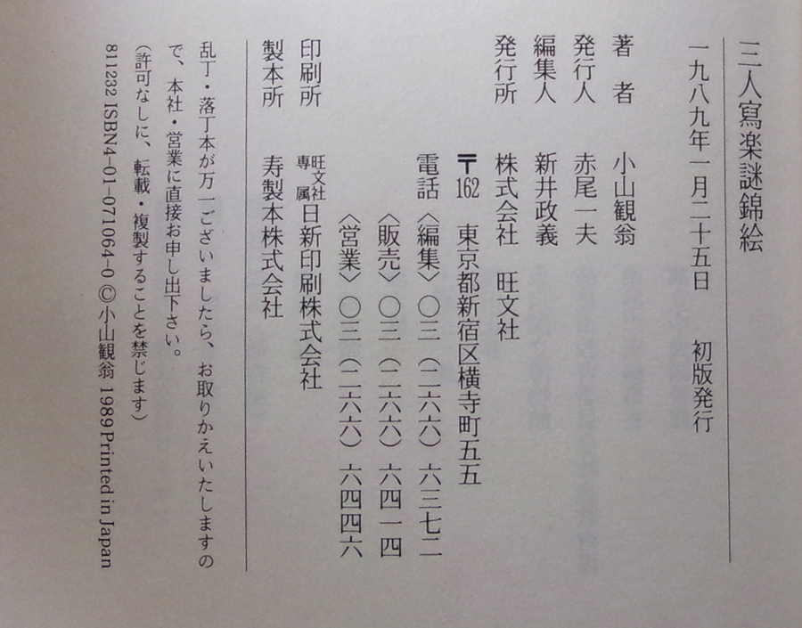 □ 三人寫楽謎錦絵 ー江戸学が捉えた寫楽ー [小山観翁]著 1989年 初版/旺文社| 出价者 | 信用 | 价格 | 时间 |
