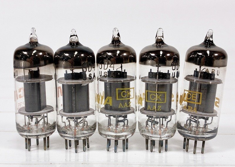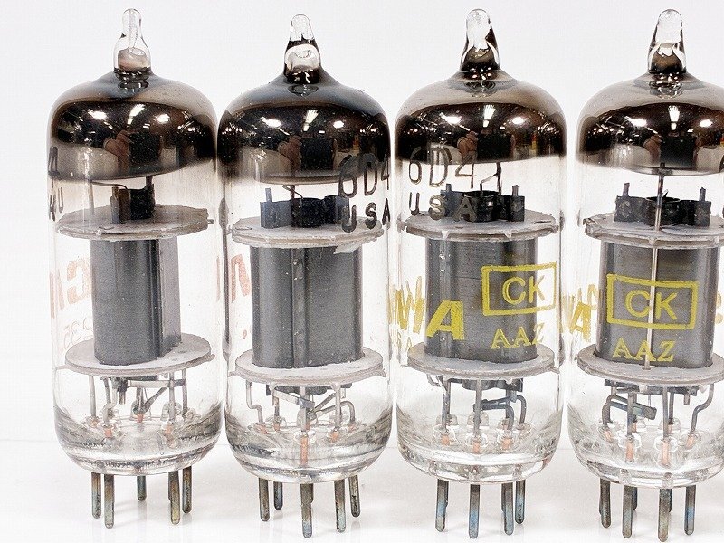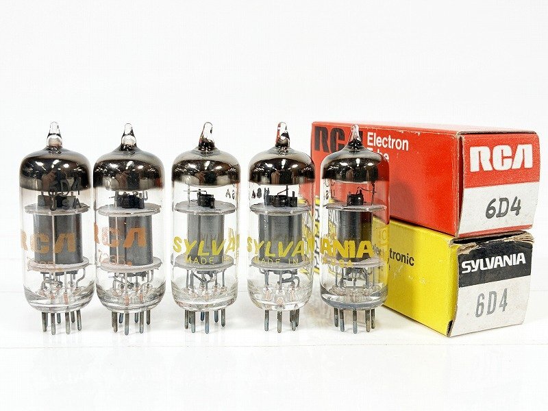 RCA,SYLVANIA 6D4 5本です。 チューブテスターでチェック済品。 定格40に対して、50、43、50、50、48です。 |