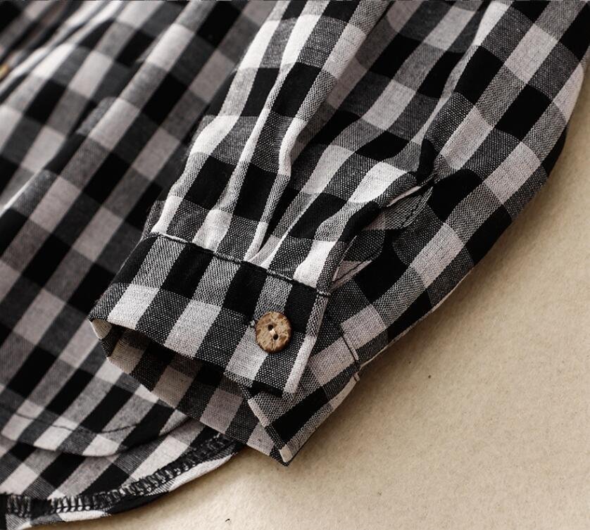 春新品 チュニック トップス レディース 綿麻シャツ ブラウス 長袖 チェック柄 大きいサイズ ゆったり★Lサイズ