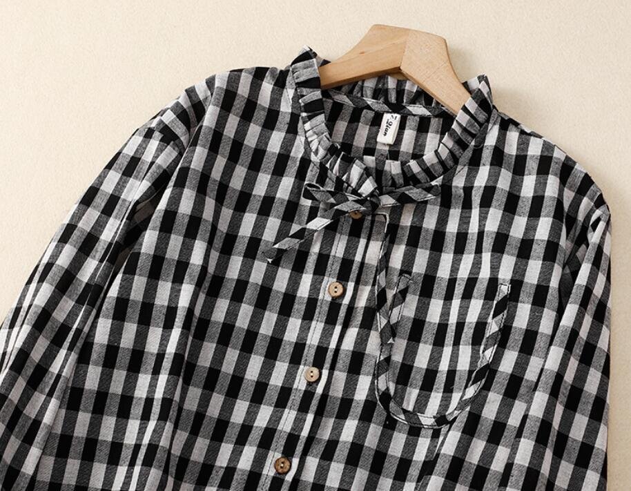 春新品 チュニック トップス レディース 綿麻シャツ ブラウス 長袖 チェック柄 大きいサイズ ゆったり★Lサイズ [浏览原始页面]