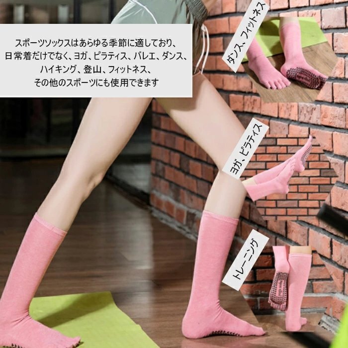 ヨガソックスコットンロングチュー スポーツソックス サッカーソックス 5本指ソックスフィットネスピラティス 靴下 2足セット☆6色選択/1点