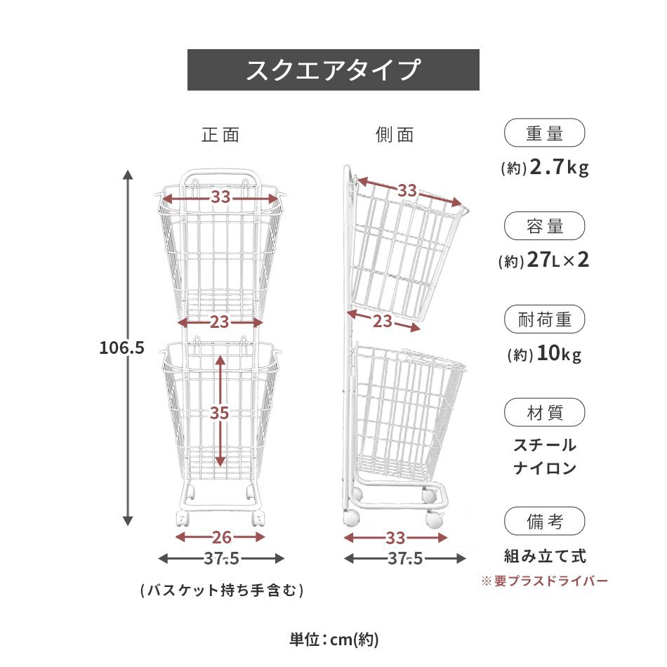 \ ランドリースペースを無駄なく使える縦置き2段タイプ / 通常のバスケットを分別用に2つ並べて置くと幅を取り、上部にデッドスペースが生まれてしまいます。 こちらの商品は2つのバスケットを縦に並べることが可能。 デッドスペースを活用することで物が多くなりがちな洗濯機まわりも無駄なくすっきり。 狭くなりがちなスペースを有効に活用することができます。 2つのバスケットは取り外しも可能で、持ち手があるのでベランダに運ぶ時なども便利にお使いいただけます。 キャスター付きで、ラックごとの移動もスムーズです。 ランドリー以外にキッチンの食品ストッカー、リビングの雑貨入れ、おもちゃ収納も使えます! ■商品コード:FAE002GYE ■商品仕様 カラー:アースグレー 形:スクエア(角型) サイズ(外寸): (約)幅37.5×高さ106.5×奥行37.5cm 重量(約):2.7kg 容量(約):27L×2 耐荷重(約):10kg 素材:スチール、ナイロン ■注意事項 ・お客様組み立てになります。(プラスドライバーはお客様でご準備ください。) ・スチール製の為、浴室ではご使用いただけません。 ・商品は、モニターによって色合いが異なって見える場合があります。 ・仕様・デザインは改良のため予告なく変更することがあります。 ■保障期間 7日間 ※商品到着後7日以内の初期不良・破損のみご対応させていただきます。 【新品未使用品です】 |
