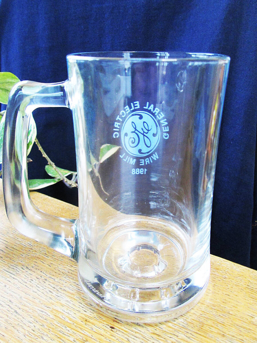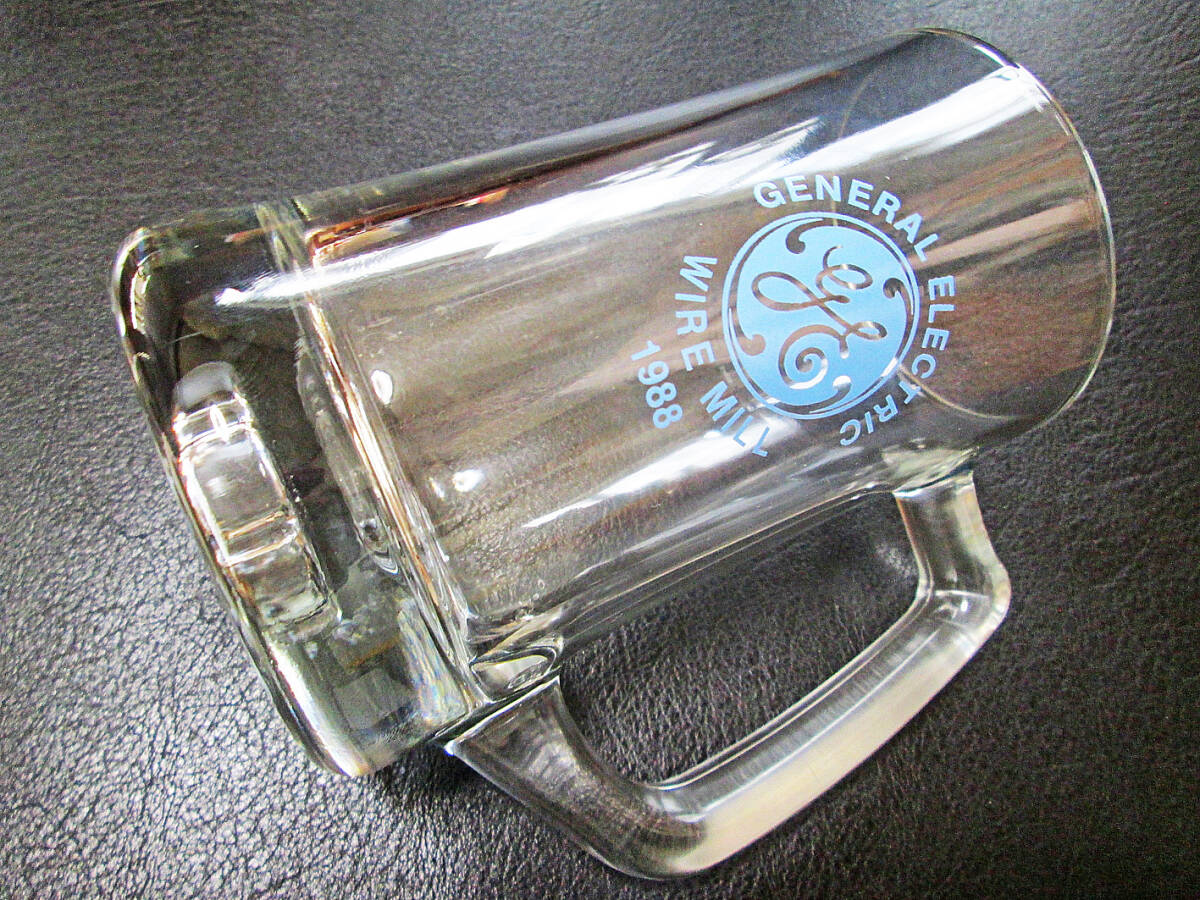 1980年代に生産されたLuminarc(リュミナルク)の珍品ビアマグ! おなじみのGEロゴにWIRE MILL(自動車部品などに使用される様々なワイヤー加工をする特殊機械)の広告が入ったガラスジョッキ。 持ちやい取っ手、底が分厚い安定感のある特許出願中の珍しい形!! コレクターの方は この機会をお見逃しなく! 大きさは直径8cm、底部8.5cm(把手含む12cm)、高さ14cmぐらいです。多少の誤差はご了承ください。 只今、70年代ビンテージのスマイリーGOODS沢山出品していますので興味のある方はチェックして見てください。 商品は未使用デットストックとして購入した美品ですが古いアメリカ製のビンテージ物ですので多少の小キズやスレ、経年変化等は、ご了承の上ご入札下さい。趣味で楽しく集めた物ですので細かく気になさる方は入札お控えください。 落札後のクレーム・キャンセルはお断りしております。 ※質問等ありましたらお気軽にどうぞ。できる限りの対応を心がけておりますが余りにルーズな方や無責任な方は落札者の都合で削除とさせて頂きます。