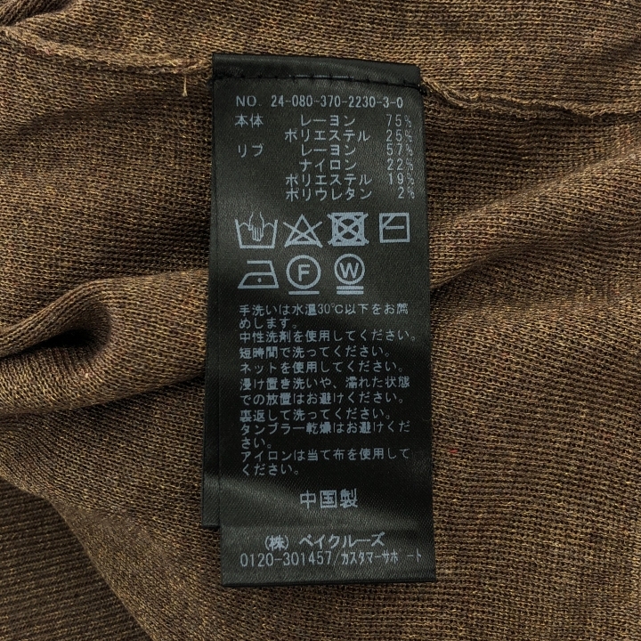 【商品詳細】ブランド名:JOURNAL STANDARD L’essage (ジャーナルスタンダードレサージュ)カラー:ブラウンサイズ:FREE【実寸サイズ】着丈:53cm身幅:54.5cm肩幅:53cm袖丈:50cm〈素人採寸の為、多少の誤差はご容赦ください〉【素材】【商品説明】【コンディション】ランク:中古A新品新品商品(タグ有り)未使用品未使用商品。(タグ無し)(検品、商品画像撮影の為、開封の場合あり)中古A使用された形跡が少なく、状態の良い商品。中古B使用感はありますが、問題なく使える商品。中古C使用感があり、細かい傷やダメージがある商品。中古D目立った汚れやダメージがある商品。コンディション詳細:20,900※商品コード:ITZIG6V2LQNT■----------------------【注意事項】 ※店頭展開、ストック品以外に倉庫保管の在庫の場合が御座います。土日祝が倉庫が非稼働の為、受注を頂いたタイミングに応じて、平日期間中でのピッキング・発送作業となりますためお時間を頂く場合が御座いますので予めご了承下さいますようお願い申し上げます。お受け取りをお急ぎのお客様は前もってコメントよりご連絡をお願い致します。・複数購入頂いた場合発送先店舗が同一の場合のみ同梱対応いたします。・商品画像に写っているもの以外の付属品はございません。 ・使用回数や購入時期については使用者本人ではないためお答えが困難です。申し訳ございません。 ・値下げ、専用の対応は原則行なっておりません。 ・コメントの対応可能な時間は11:00〜19:00です。 この時間以外でも可能な場合はご回答差し上げます。 ・上記の対応可能時間内のコメントであっても返信は翌日以降になる場合がございます、ご了承下さい。 ・お客様都合によるキャンセルは原則お受けしておりません。 ・掲載商品は店頭でも同時に販売しております。 店頭での売れ違い等でご注文をキャンセルさせて頂くことがございます。・店頭にて同時販売しておりますので、画像と状態の変化がある場合がございます。・展開店舗が記載と異なる場合がございますので実店舗に来店される際は前もってコメント欄から在庫の確認をお願いいたします。・店舗名 CIRCULABLE SUPPLY下北沢店・TEL 03-6629-1362・住所 東京都世田谷区代沢5-30-2 AG下北沢ビル1F