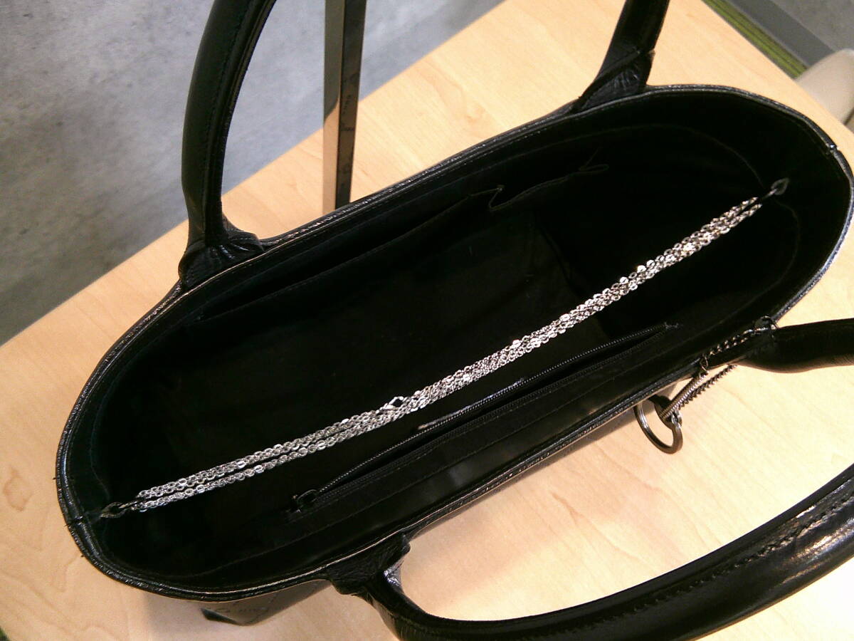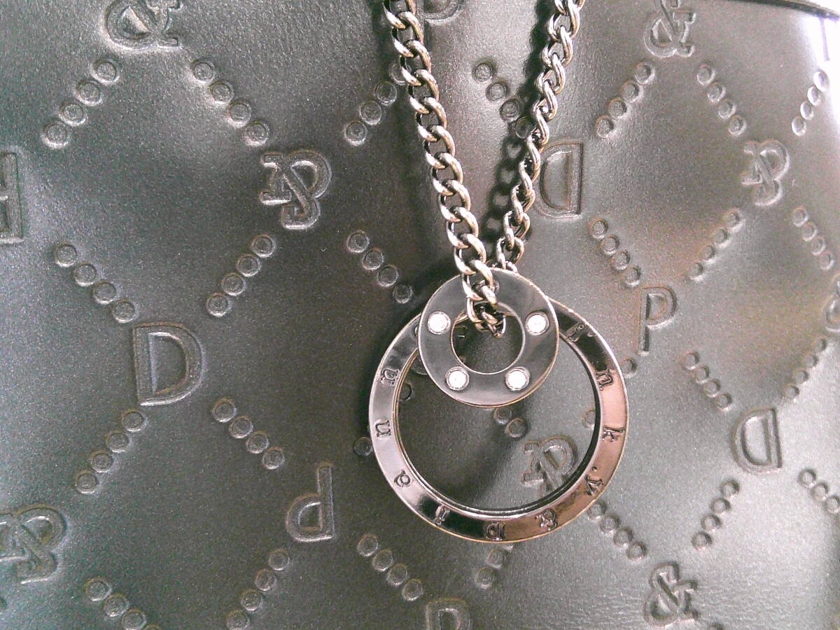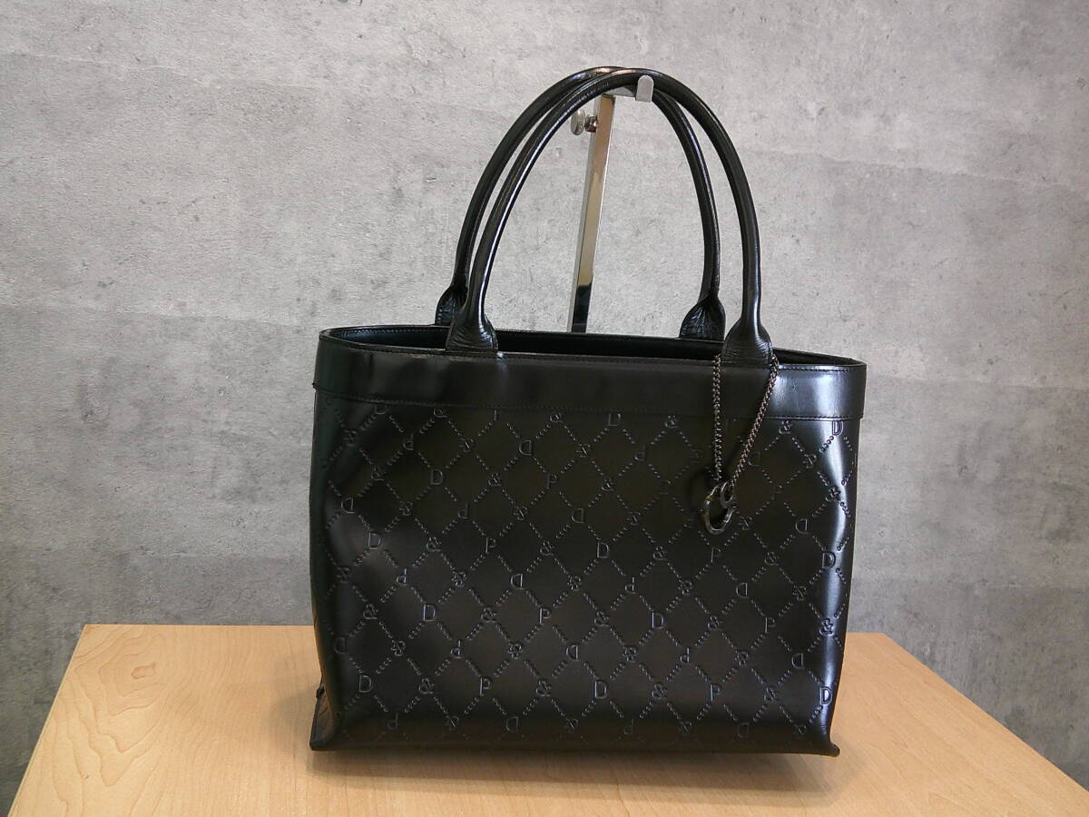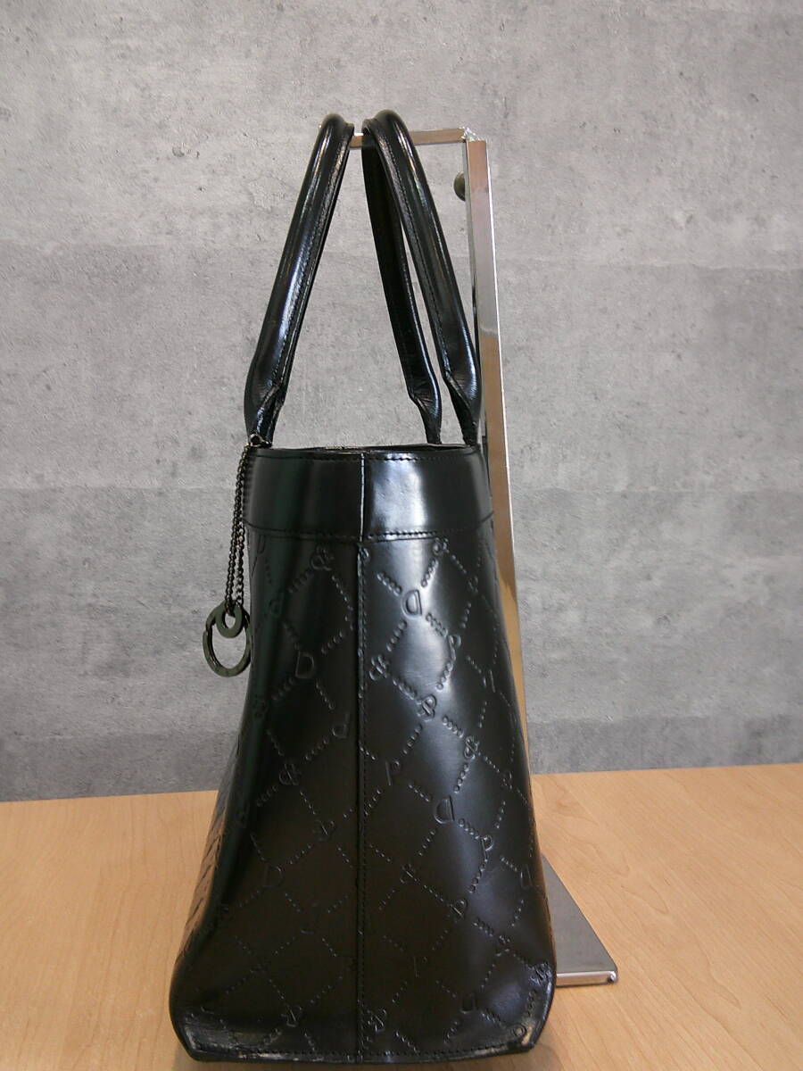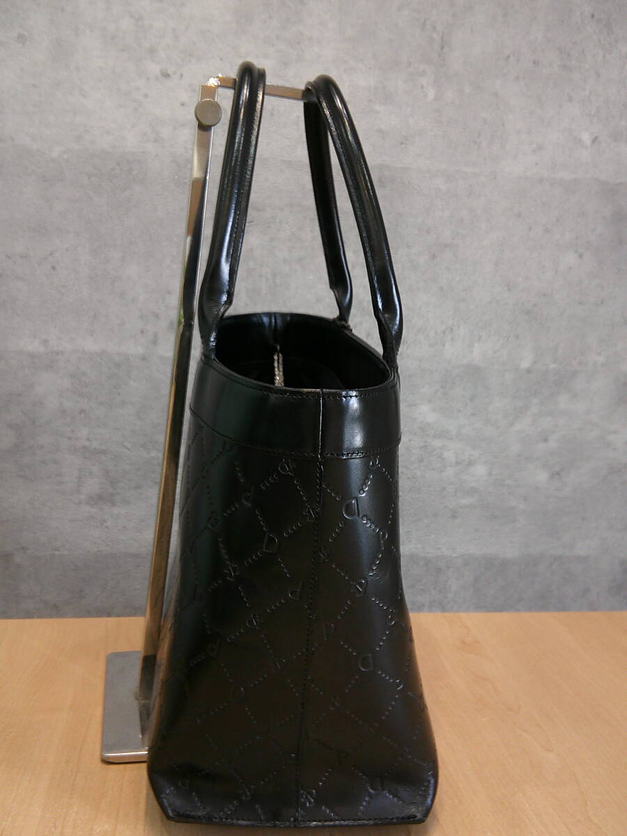 | Pinky&Dianne ピンキーアンドダイアン ロゴ型押し フェイクレザー ハンド トートバッグ ブラック系 チャーム付属 カバン 鞄 USED品 |