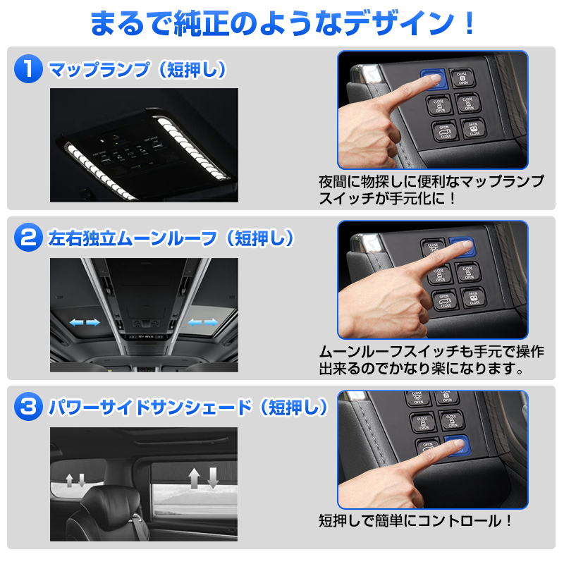 | 運転席 増設 ドアスイッチ キット アルファード ヴェルファイア 40系 開閉 スイッチ パワースライドドア バックドア リアゲート イージーオープンキット Y1606 | |
