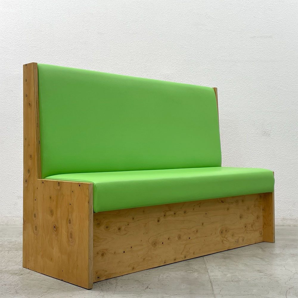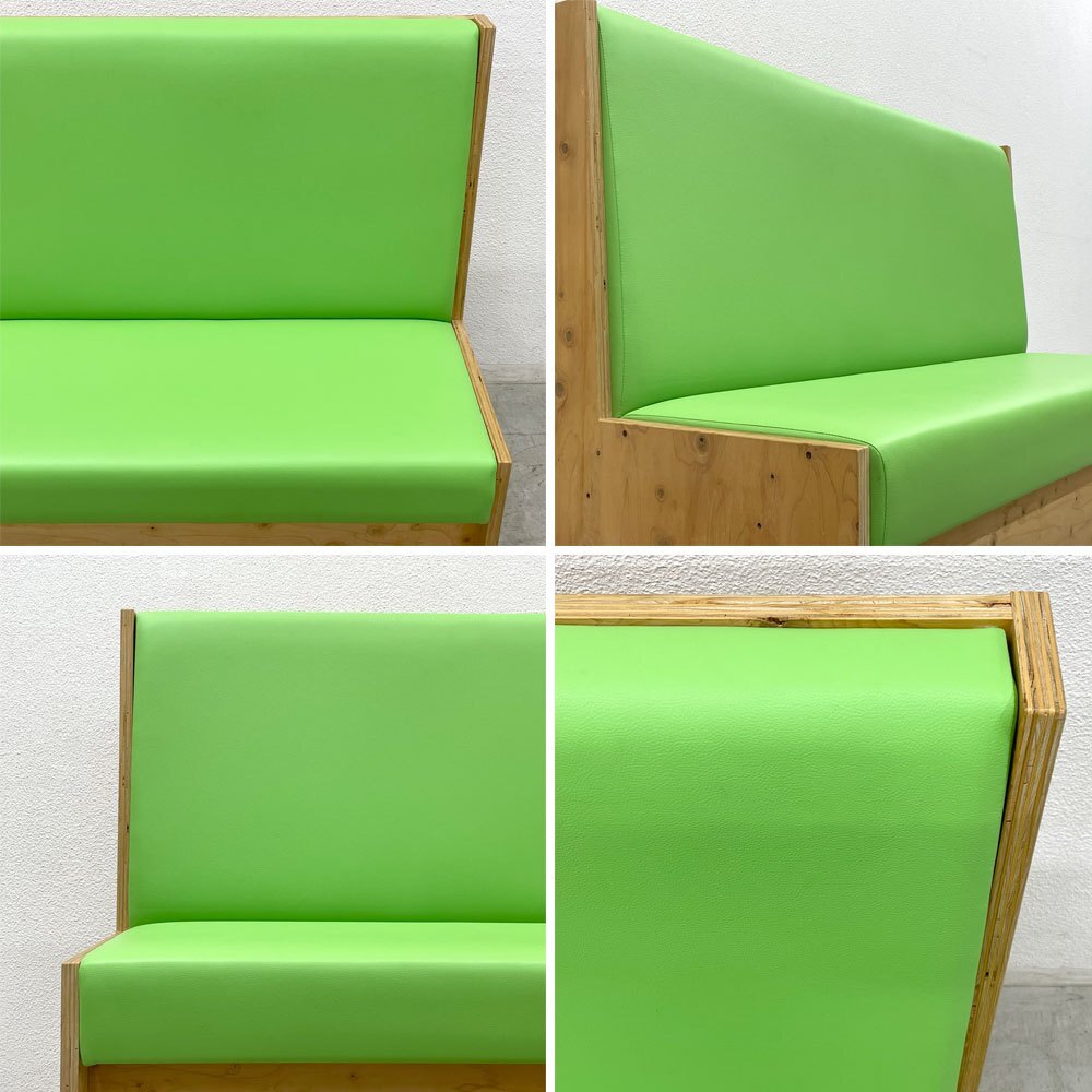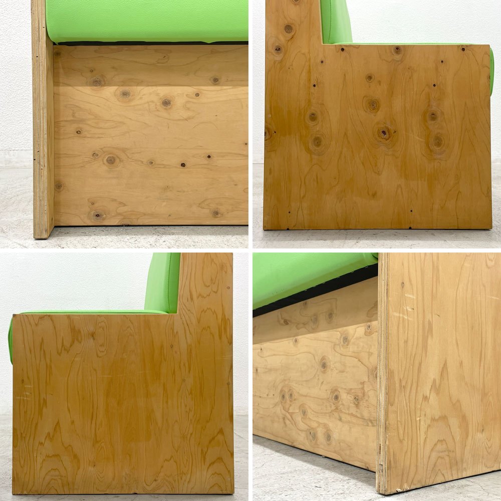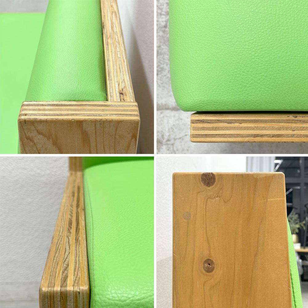 | コメント | 特注製作による木製フレームのロビーソファ。 店舗の待合スペースや施設の共用部など、公共空間での使用を想定した堅牢なつくりと、無駄のないシンプルなデザインが魅力の一台です。背面までしっかり化粧板仕上げとなっており、設置場所を選ばない自由度の高さもポイントです。 フレームには国産の積層合板を採用。層になった木口をあえて見せる構造は、合板ならではの素材美を活かした意匠で、ナチュラルで親しみやすい印象を与えます。 背面に広がる木目も美しく、ロビーや店舗のレイアウトによっては、ソファ自体を“間仕切り”として使うことで、空間のゾーニングや動線づくりに役立ちます。ソファの背面を見せるレイアウトが絵になるのは、この素材選びと丁寧な仕上げがあってこそ。 座面と背もたれには鮮やかなライトグリーンのPVCレザーを使用。メンテナンスが容易で、飲食店や商業施設、医療・福祉施設など幅広い現場に対応。適度なクッション性を備え、短時間利用から長時間の待機までストレスの少ない座り心地です。 サイズは約W150 × D60 × H105cm。2〜2.5人が掛けられるバランスの良いサイズ感で、家庭のダイニング横やリビングの一角に取り入れてみるのも面白い使い方。背面の木目がインテリアのアクセントとなり、空間を穏やかに仕切りながら機能性も確保できます。 店舗什器としてはもちろん、住まいのレイアウトにも新しい発想をもたらしてくれる多用途なベンチソファです。 ※当ショップは、主にリサイクル品を取り扱っております。基本的にUSED品である事をご理解頂き、ご入札をご検討下さいませ。 |