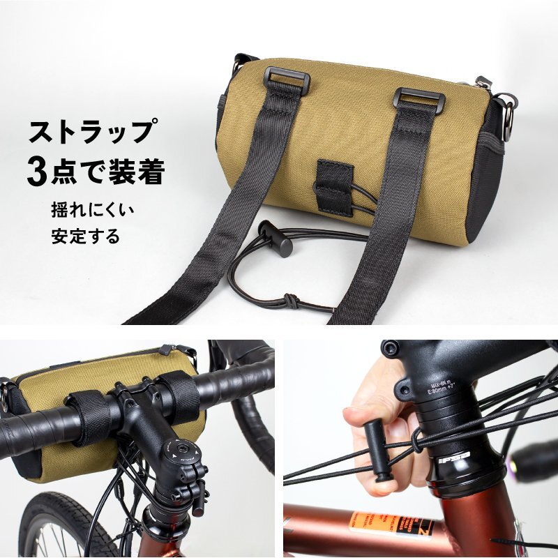 GORIX ゴリックス フロントバッグ 自転車 防水撥水 ショルダーベルト(1L) コンパクト ハンドルバッグ(KARA) ブラック