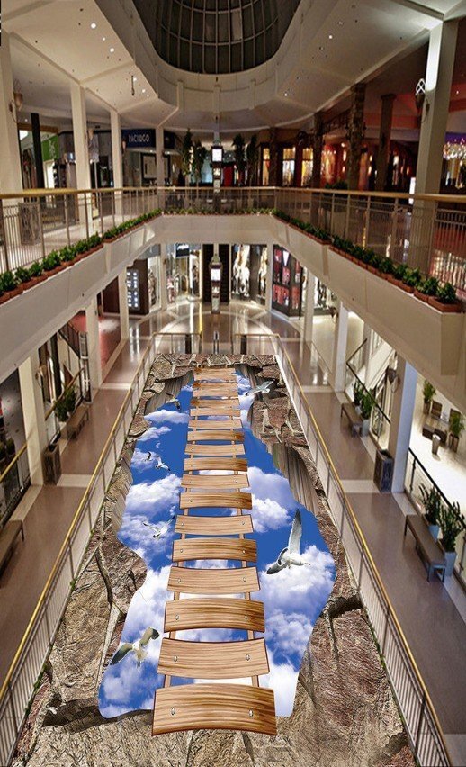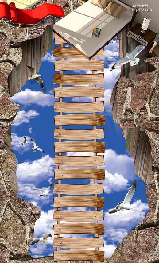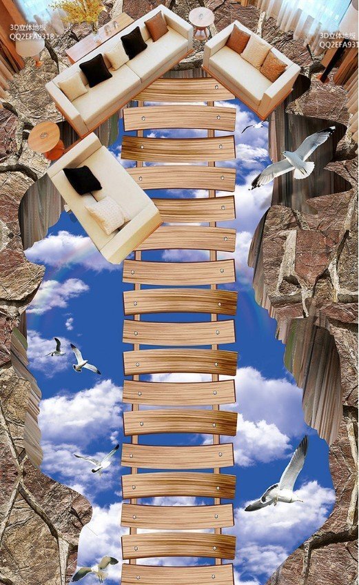 C637 巨大 3D フロアマット 2m*5m* 危険! 落とし穴 トリックアート 吊り橋 防音 断熱 滑り止めシート 床 壁 天井 はがせるシール