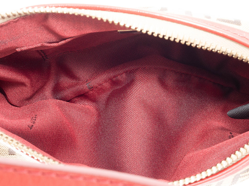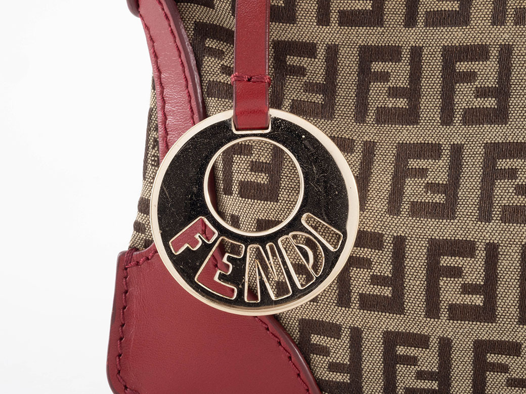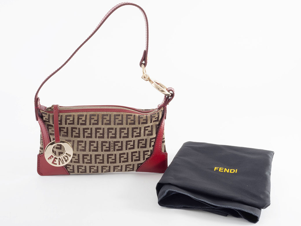 ■ フェンディ ズッキーノ ミニバッグ ハンドバッグ 8BR485 キャンバス|レザー レッド|ベージュ レディース アクセサリーポーチ FENDI【中古】【ランクAB】 |