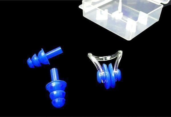 ◆耳栓、鼻栓セット シリコーン製 防音防水耳栓 スイミング・ウォータースポーツ用 ケース付 汎用耳栓、鼻栓セット KHM02