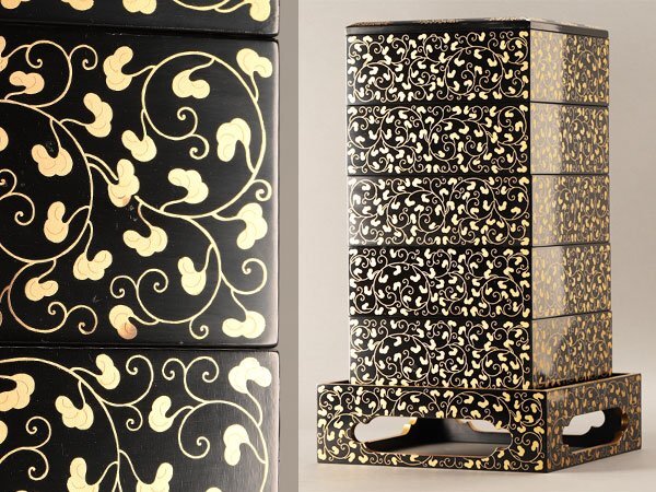 重箱 幅 約26×26cm 高 約47cm 重台 幅 約31.8×31.8cm 高 約10cm |