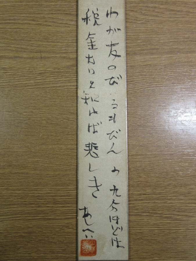 | 紙本サイズ | 縦:約36.2cm×横幅:約6㎝ (普通の短冊サイズです。) |