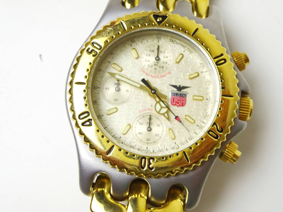| 稼働品◇エルジン FK-528-A クオーツ コンビ クロノグラフ | |||